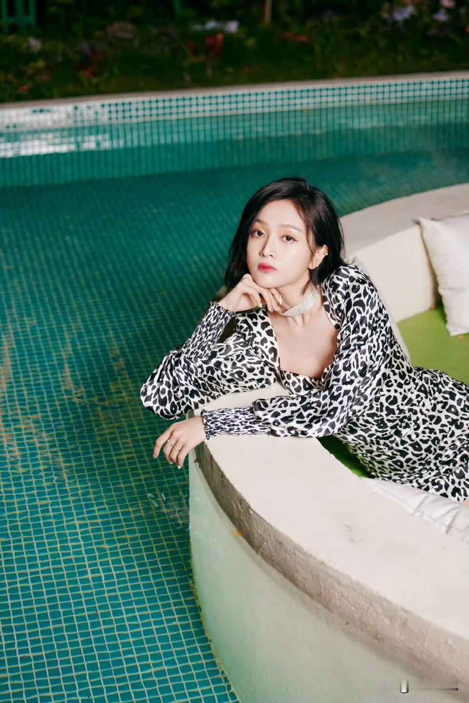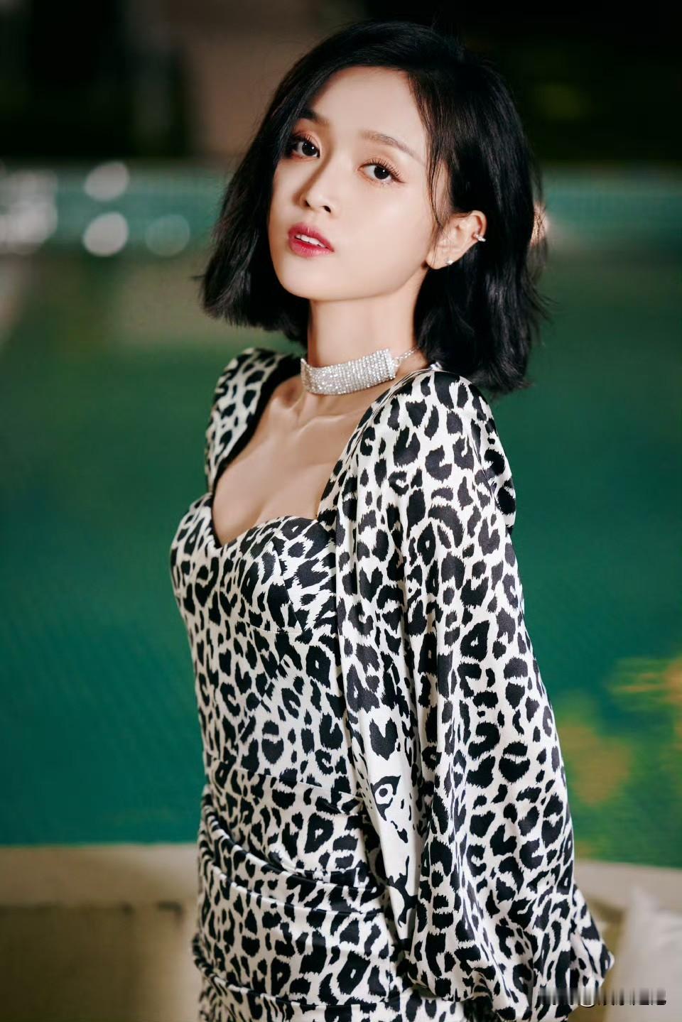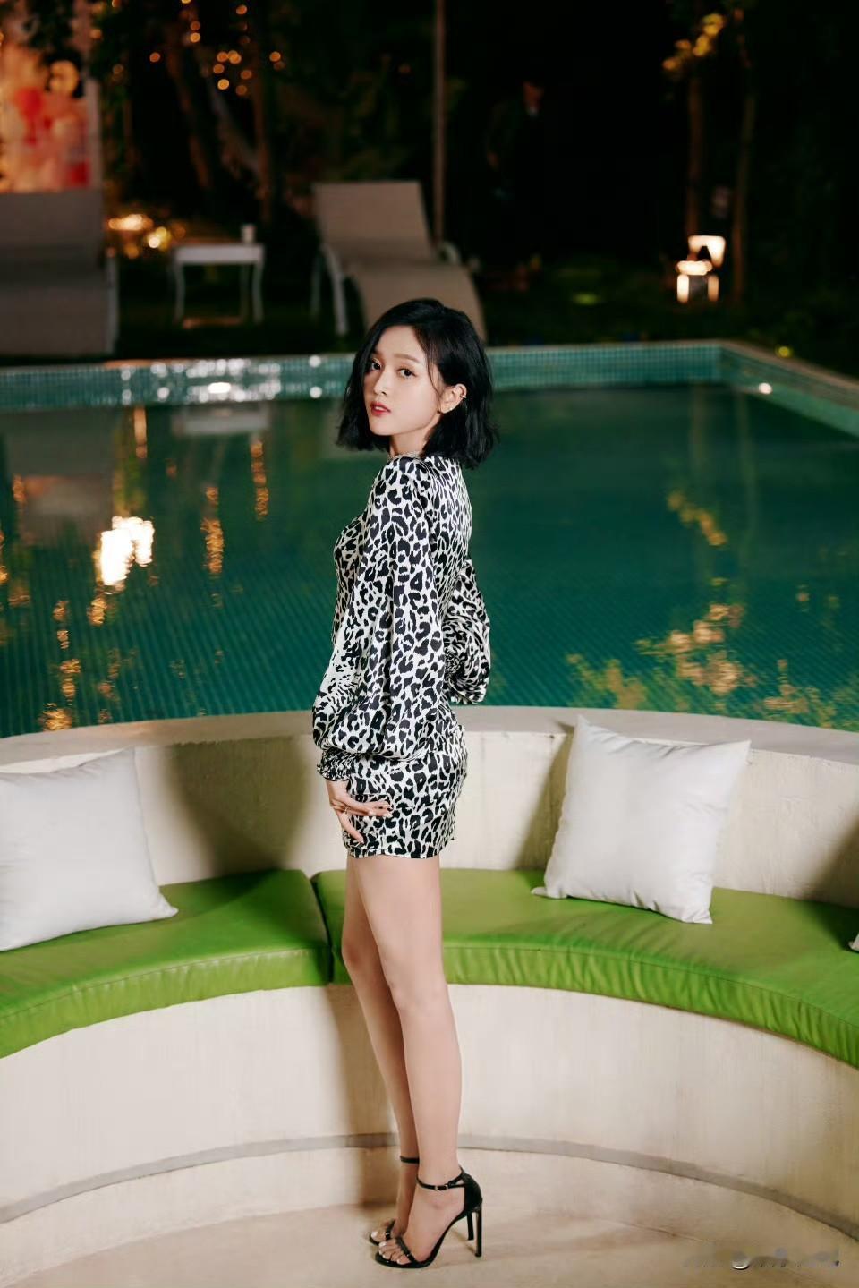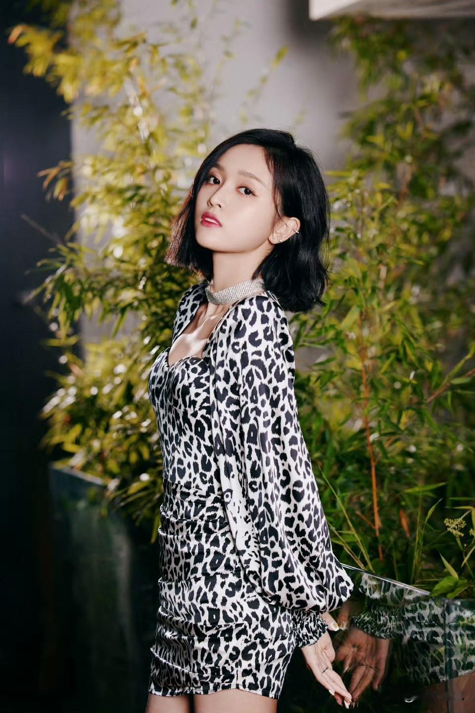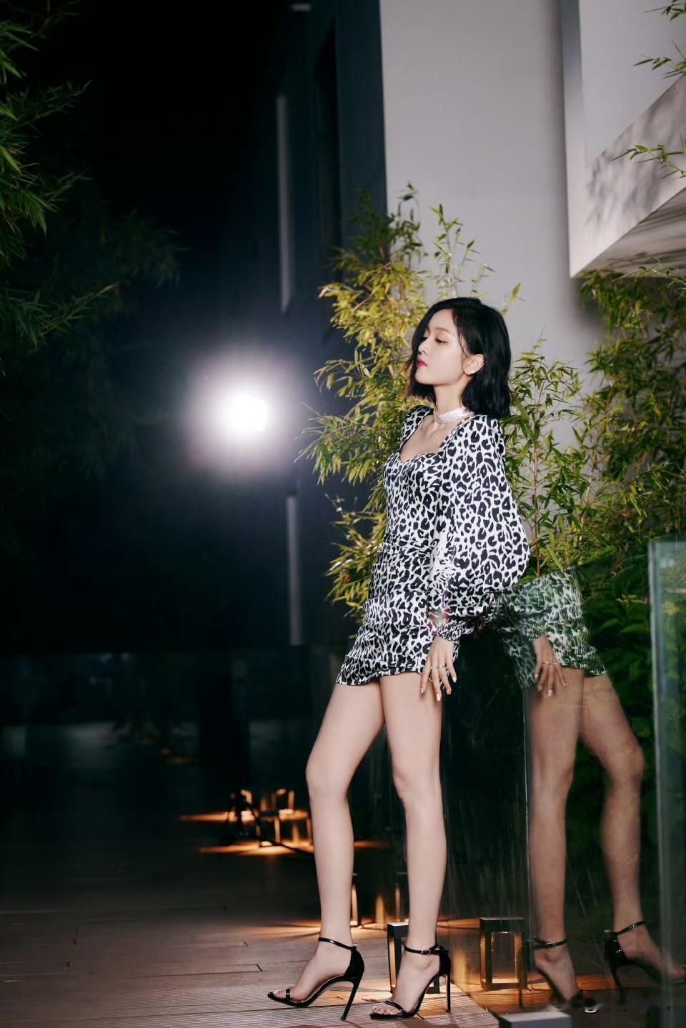 吴宣仪豹纹包臀裙配细高跟