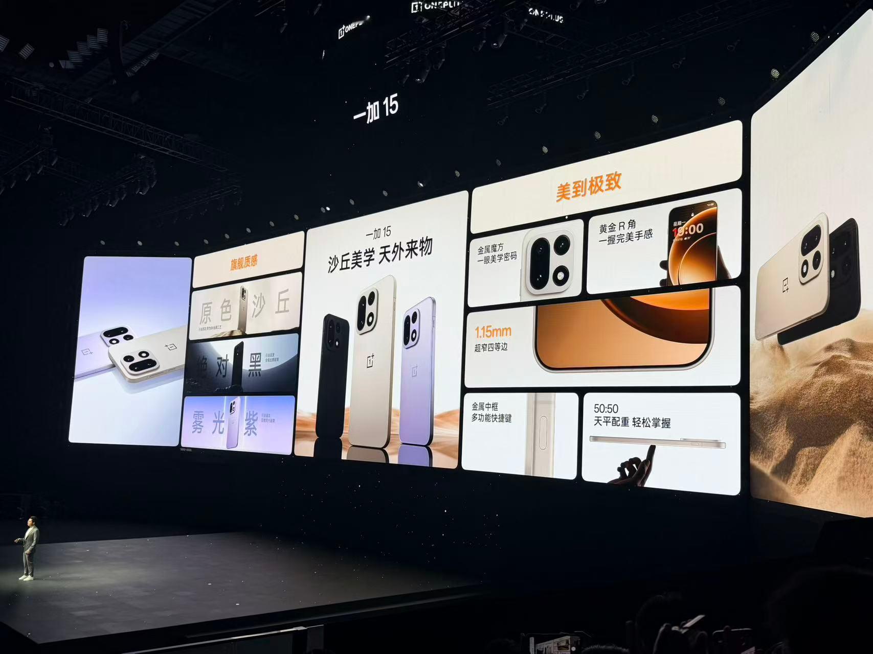 一加15以沙丘美学为灵感,打造了这个原色沙丘,真得是绝了,观感、质感,双重拿捏。另外,一加15的正面则采用四边等宽设计,黑边仅1.15mm,比一根吉他的琴弦还要细,就问你爱不爱?一加15和Ace6新品发布一加15