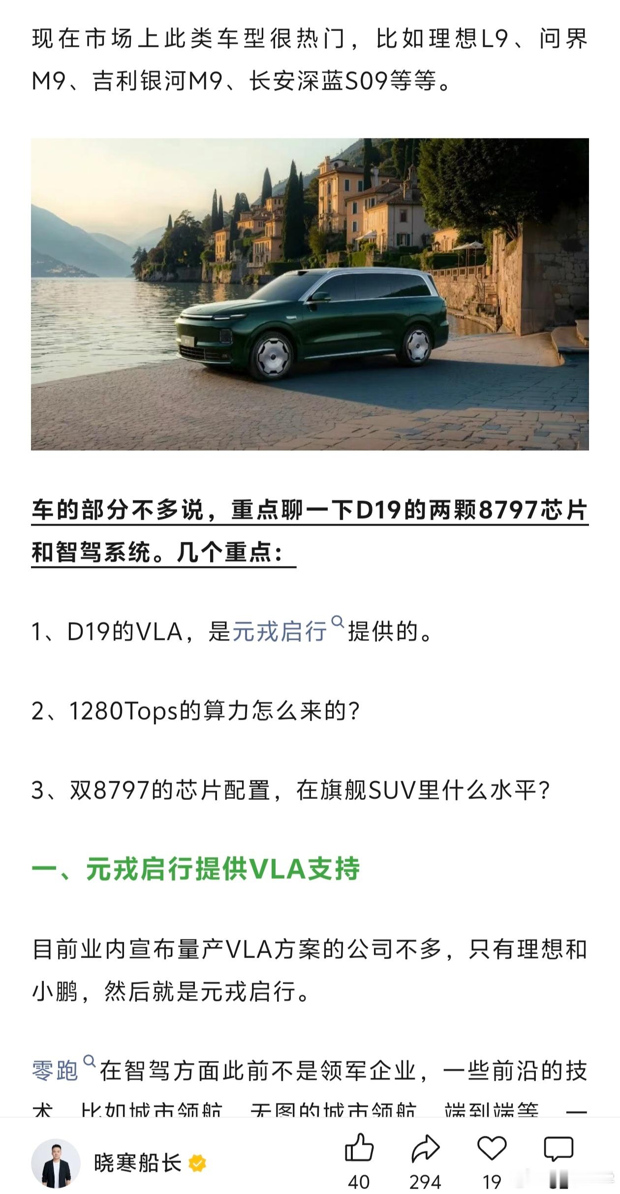 原来零跑 D19 的 VLA 方案是元戎启行提供的,元戎又再一下城。