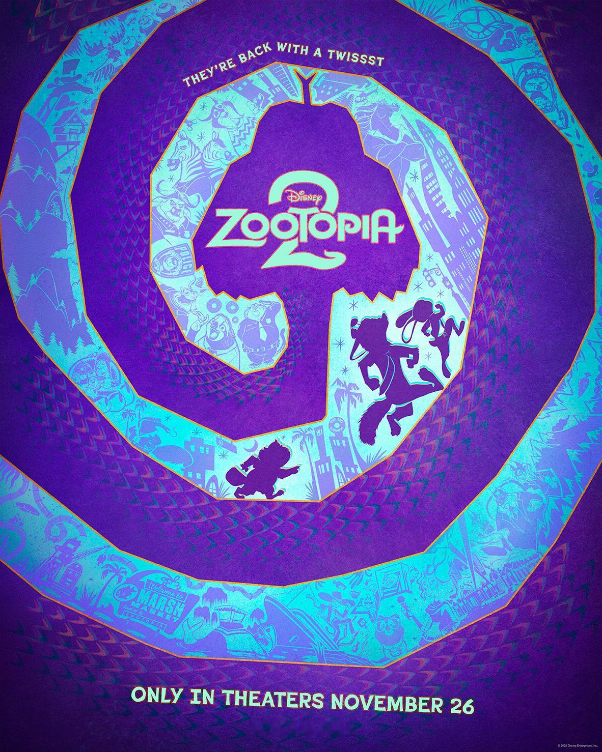 疯狂动物城2曝光多款海报,11.26中美同步上映!倒计时一个月!🦊🐰🐍