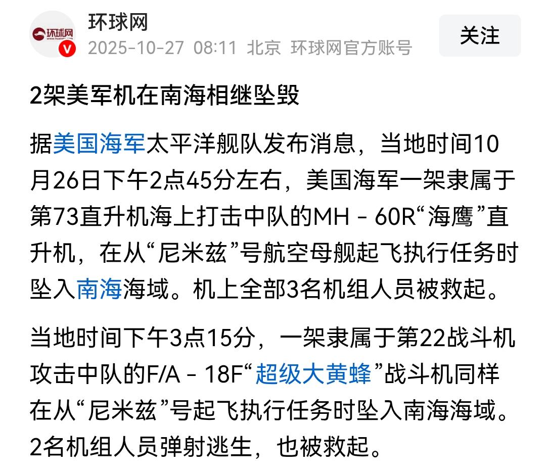 鹰酱这是…要来南海“碰瓷”吗??[吃瓜群众]“尼米兹号”航母两小时之内掉两架飞机,而且都是“飞机掉了、人没事”[思考]演得有点明显吧…不是说有好心人“捐款”把欠薪问题解决了斗嘛,怎么还演这一出[what] 有人说,会不会是我们的军舰用了“远程手段”,这绝对不可能,我们从没有“冒险搞小动作”的习惯[强]