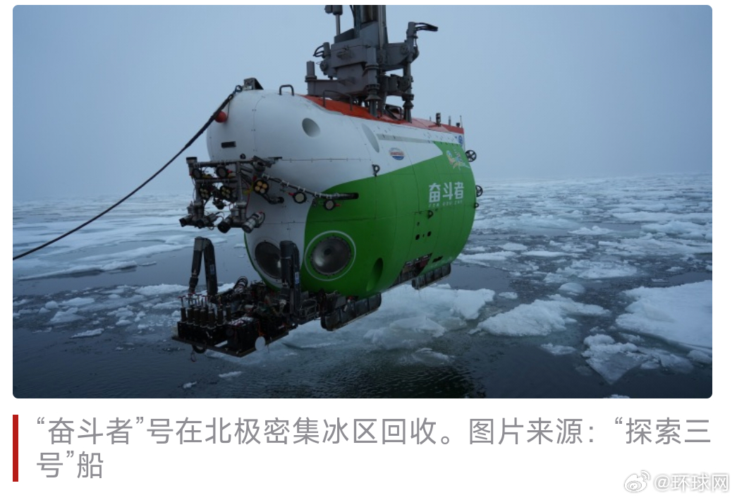 #中国又拿下一个世界唯一#【“奋斗者”号完成43次下潜,并与“蛟龙号”实现水下联合作业,#我国科考队圆满完成北极载人深潜任务#】2025年10月27日,由自然资源部、中国科学院共同组织,中国科学院深海科学与工程研究所牵头,依托我国自主设计建造的国际首艘具破冰能力的载人深潜作业母船“探索三号”及“奋斗者”号载人潜水器,执行北极载人深潜任务的科考队顺利返回。“奋斗者”号在北极共完成了43个潜次作业任务,并与“蛟龙”号载人潜水器实现了水下联合作业,创新了我国双载人潜水器水下协同作业模式。