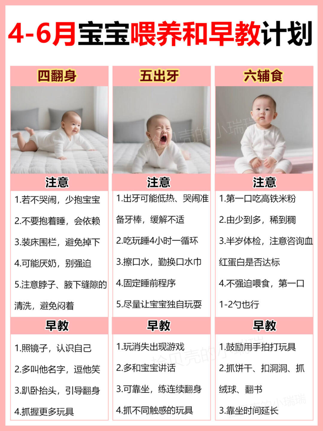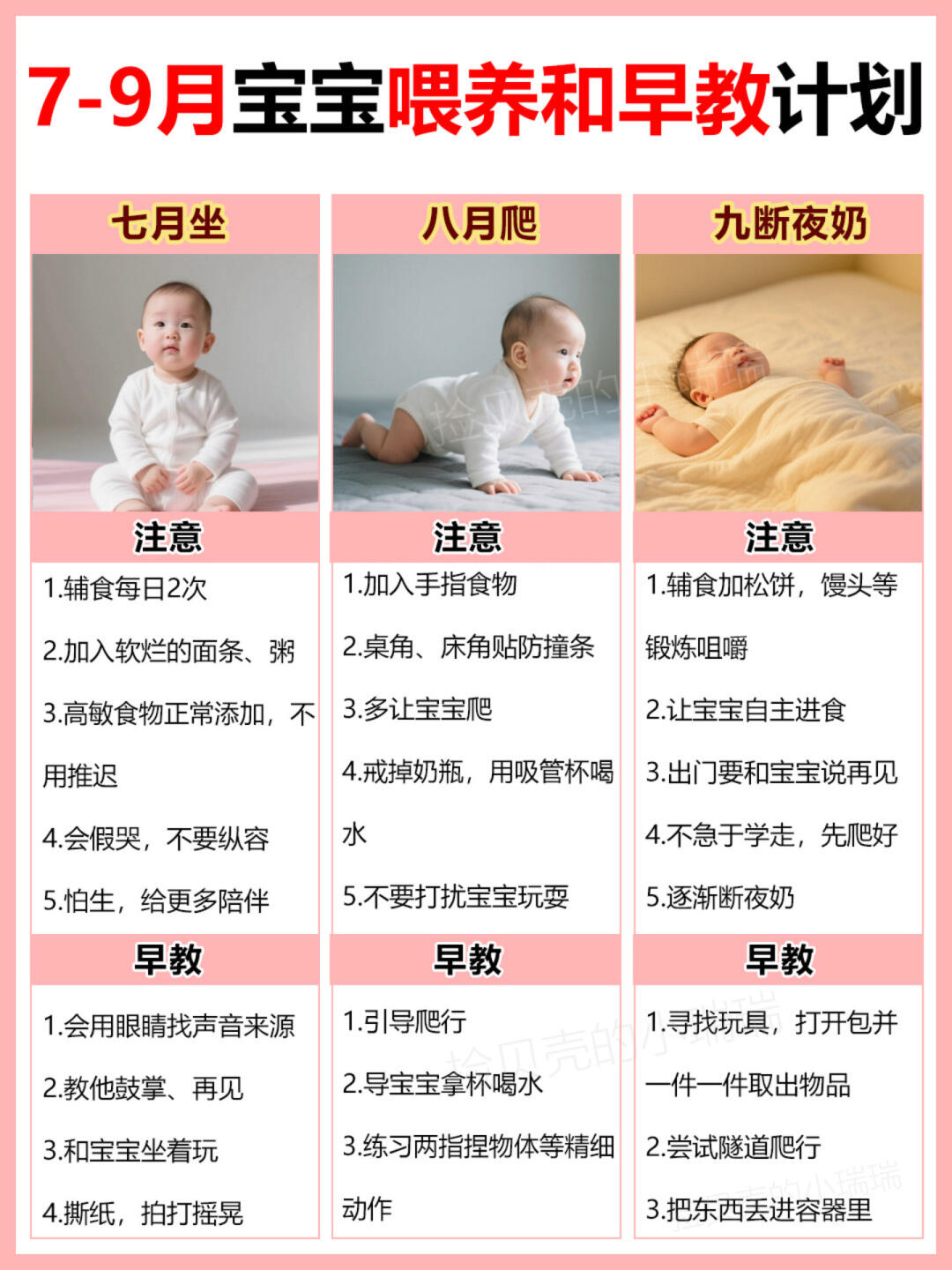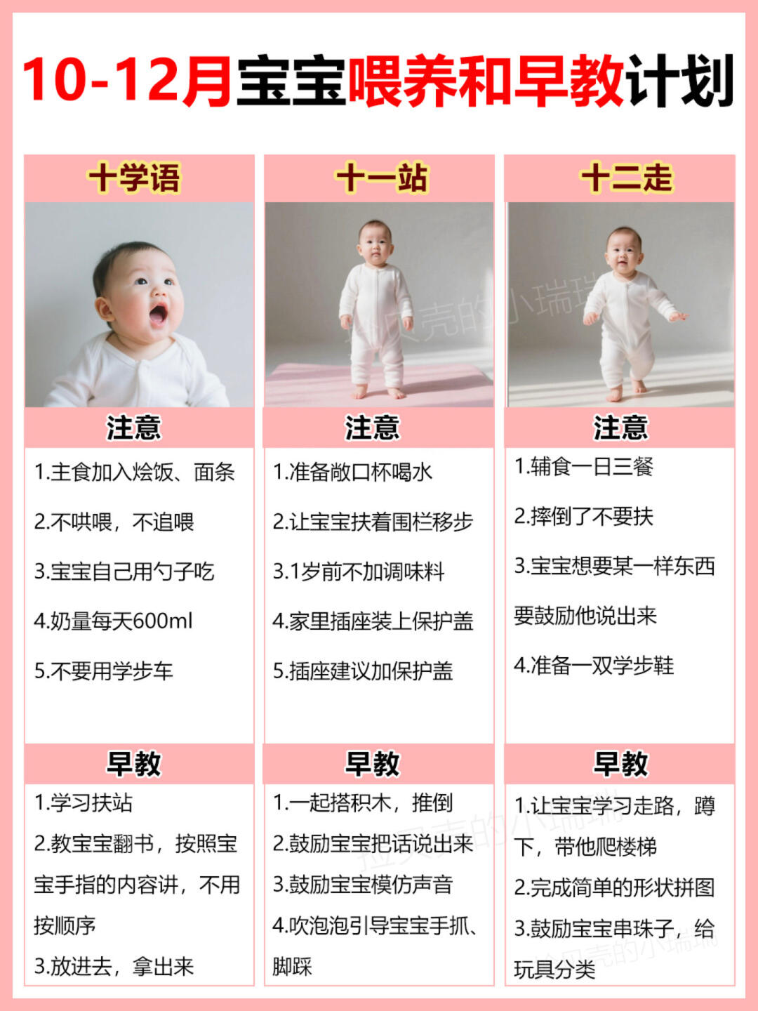 0-12个月宝宝发育变化+喂养要点+早教计划