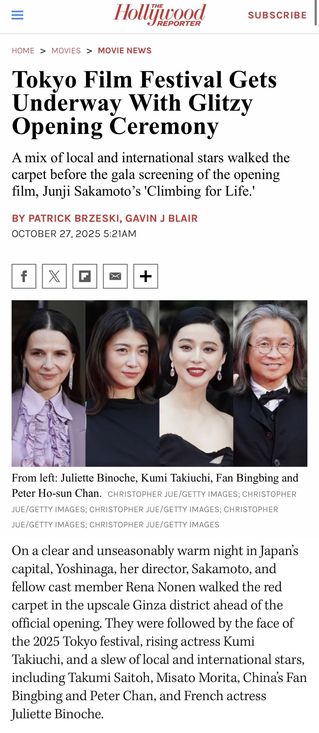 范冰冰 x The 38th Tokyo International Film Festival 来自Variety与The Hollywood Reporter的报道:影片自筹备至完成,凝聚了主创团队的心血与坚持。作品以独特的美学语言,展现土地与女性力量的交织,成为本届影展最受瞩目的作品之一。