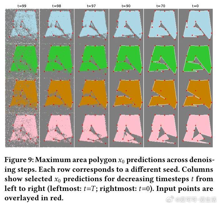1. 方法创新:将几何问题转化为图像生成任务,训练扩散模型从随机高斯噪声逐步生成满足约束的几何结构。无需专门设计复杂参数化表示,直接利用视觉表示,简洁且高效。