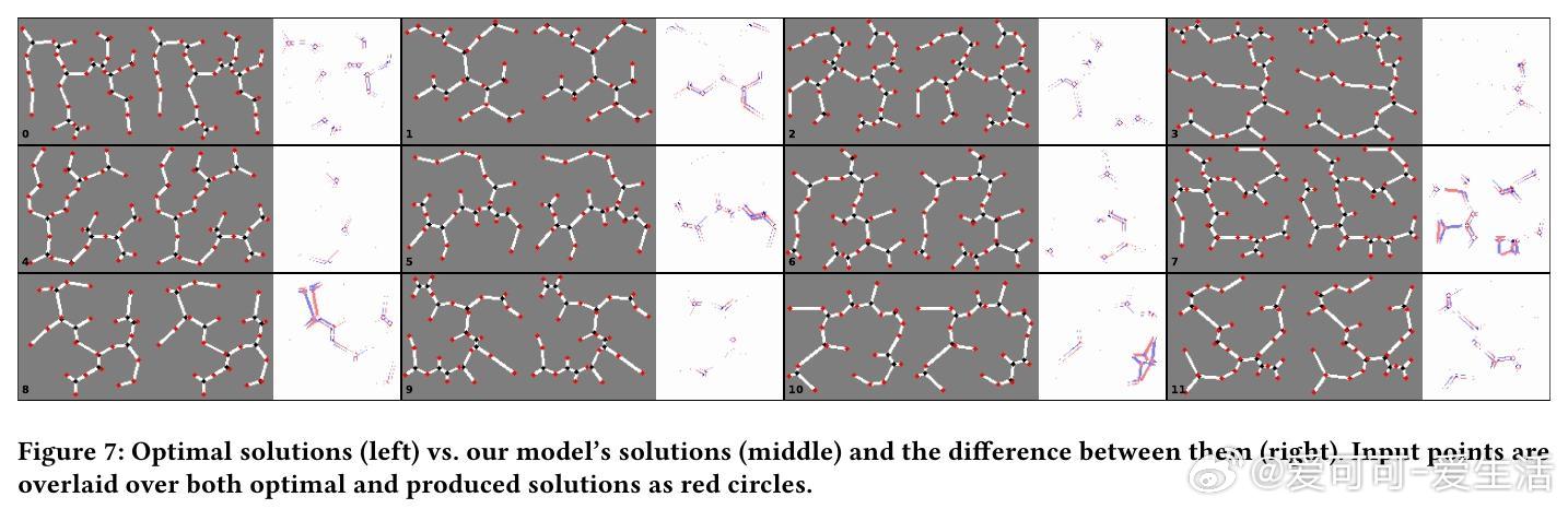 - 斯坦纳树问题(Steiner Tree Problem):寻找连接指定点集合的最短网络,容许引入辅助点。模型生成的网络不仅接近最优解,且具备较强泛化能力,能处理比训练时更多的点。