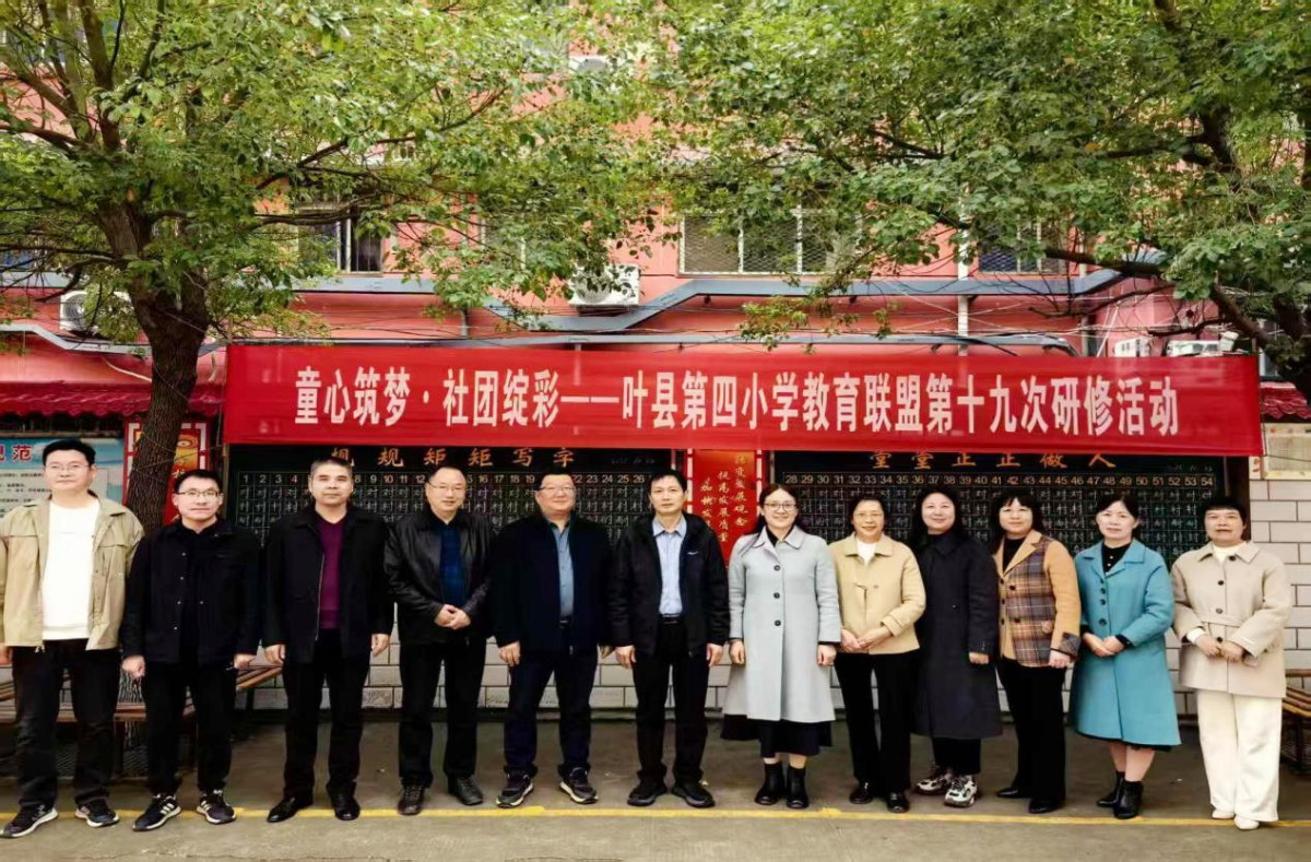 10月27日上午,平顶山市叶县第四小学热闹非凡,一场以“童心筑梦・社团绽彩”为主题的社团阶段成果展暨教育联盟第十九次研修活动在此盛大举行。活动旨在进一步传递“爱艺术、勤劳动、乐创新”的理念,全面提升学生艺术素养与创造能力,营造积极向上、充满活力的校园文化氛围,为培养德智体美劳全面发展的社会主义建设者和接班人添砖加瓦。