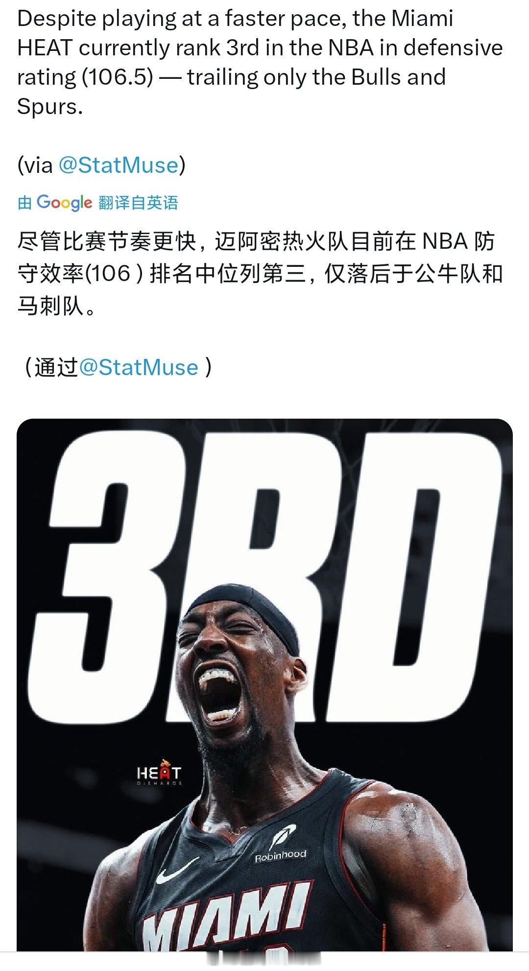 热火现在不光进攻节奏快,防守依然很在线,防守效率联盟第3[666][666][666]