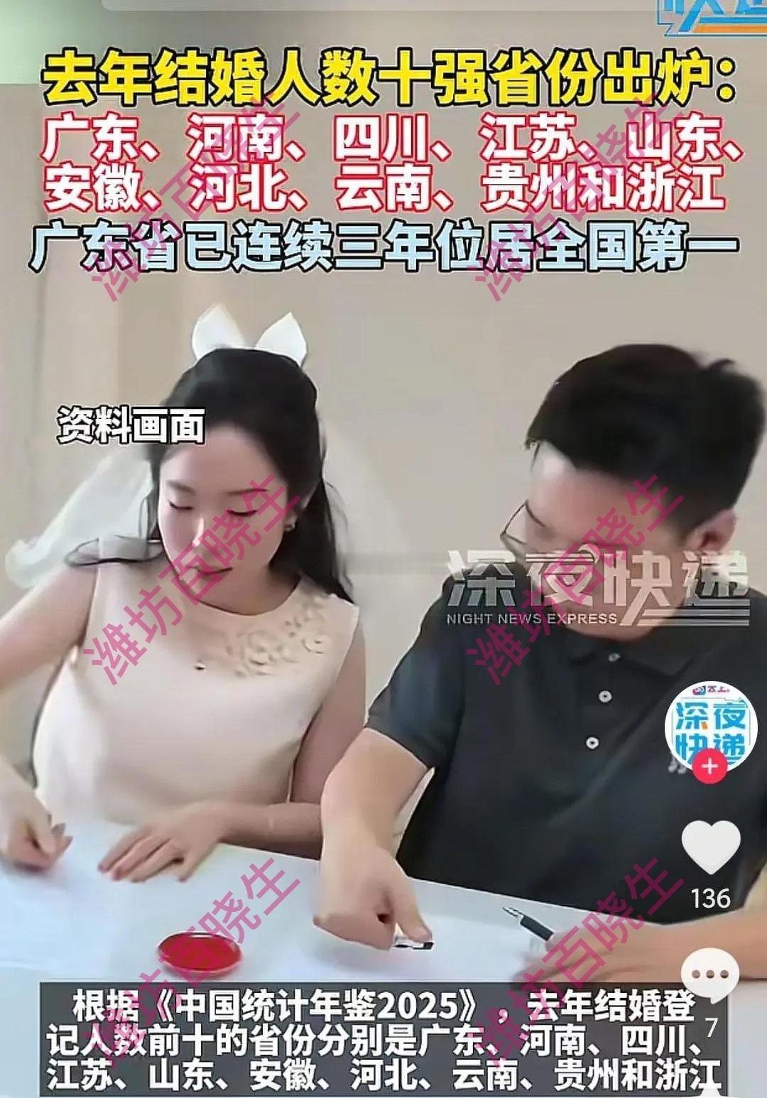 2024年结婚、离婚、出生人数十强省份出炉,看看分别都是哪里? 国家统计局最新数