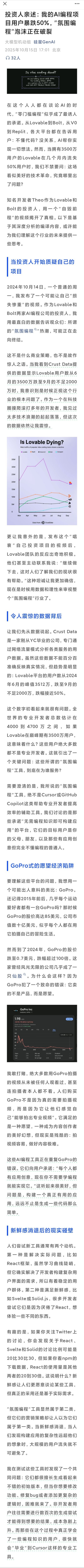 拥有3500万用户的Lovable在几个月内流失50%。因为都是不懂编程的人来尝鲜,初步成功后发现不实用。真正能用好AI帮助编程的,是懂编程的人。