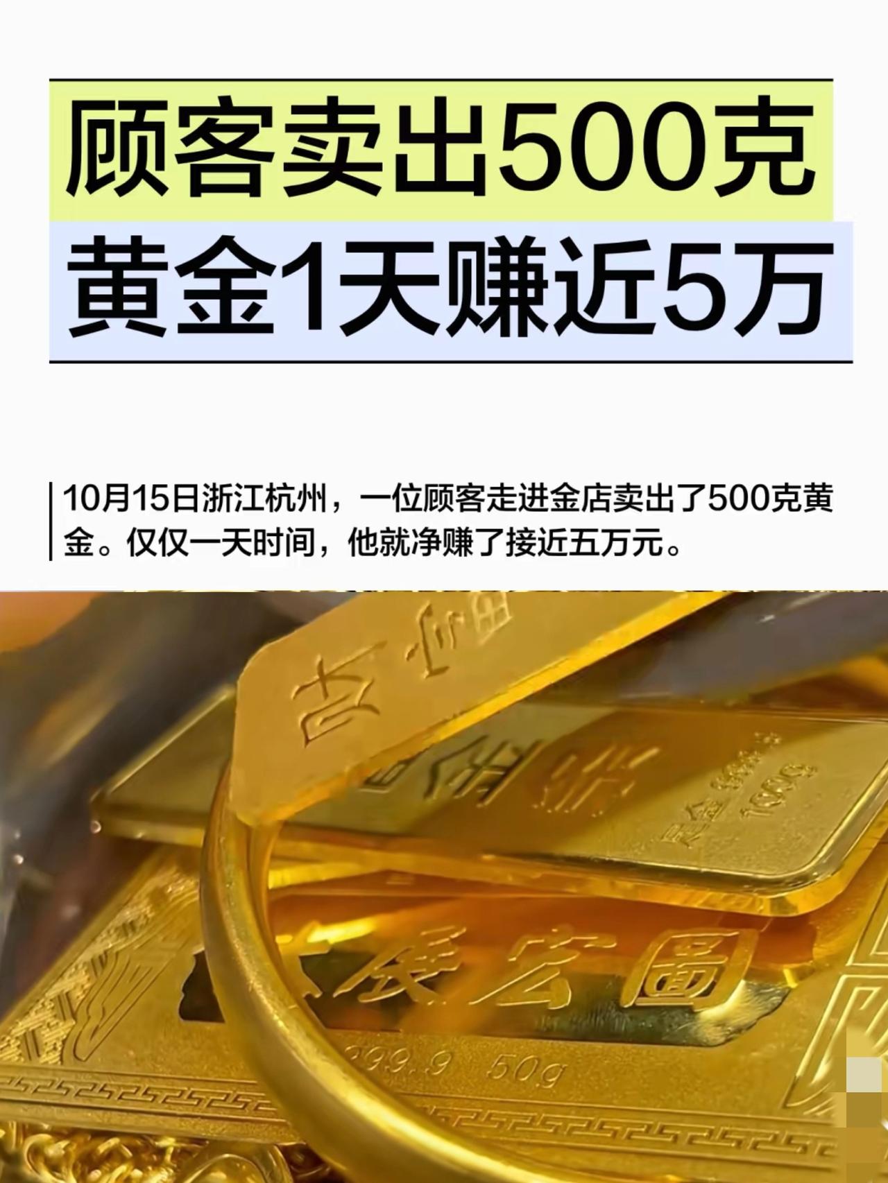 杭州那哥们一天靠500克黄金赚5万? 这哪是投资,分明是踩中了金价过山车的“幸运节点”,先别激动哈,真当谁都能复制这运气呢! 金店老板早说了,金价上午920、中午飙950、下午就砸回原点,这起伏比坐跳楼机还刺激。可总有人眼馋,老顾客跟风买200克,结果亏2000多割肉,还有人贪心想多赚点,直接把黄金砸手里。 别以为这是个别情况,现在金价动不动就一天跌4%以上,杠杆炒金的人甚至一天亏掉几年工资。普通人连美联储政策、地缘政治这些影响金价的因素都搞不懂,赚的不过是运气钱,亏的却是真本金。 黄金该是家庭财富的“压舱石”,每年买百八十克抗通胀才靠谱,想靠它暴富纯属赌徒心态。谨慎投资! 大家怎么看这事。 黄金价值分析 黄金变现 一斤黄金,价值多少钱?