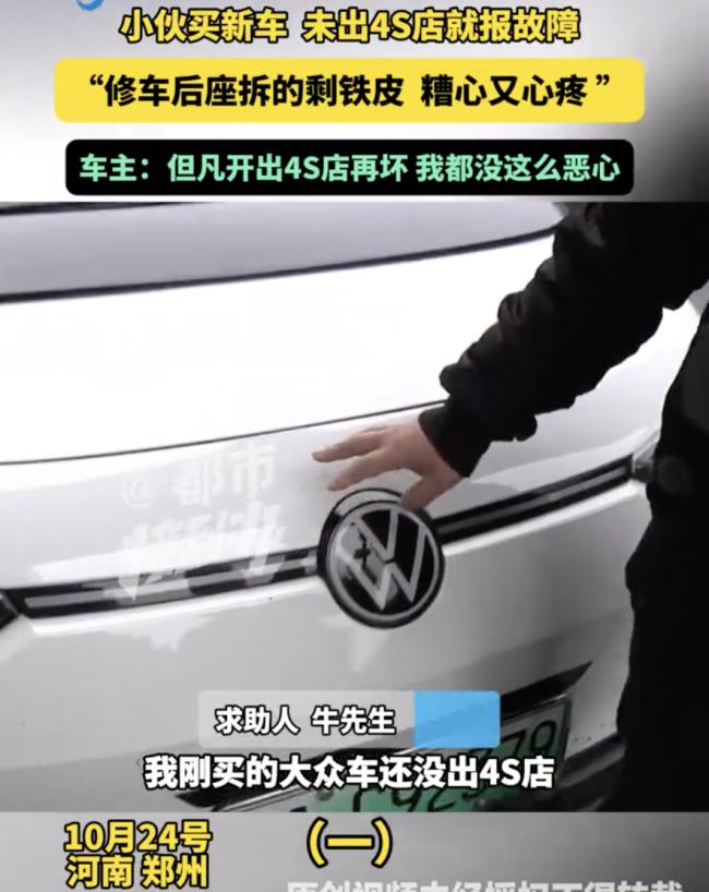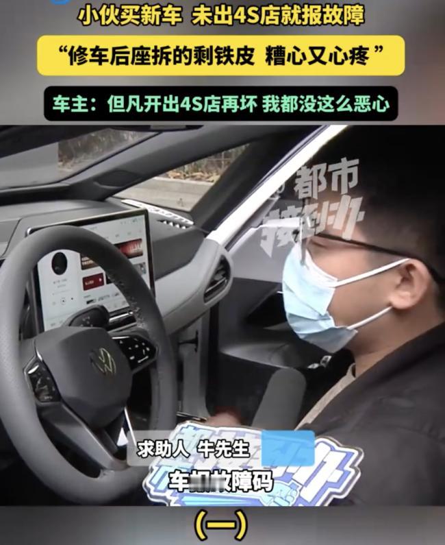 买新车本是件开心事,可要是还没出4S店就报故障,那心情简直糟透了。10月24日,河南一男子就遭遇了这闹心事儿,新车没开出4S店就出故障,维修后后座还被拆得只剩铁皮,搁谁谁不心疼。 无独有偶,宁波张先生买的国产野马汽车,还没开出4S店气囊灯就亮了,现场修好回家又亮,之后变速箱也出问题,才开500公里就修了3次,6700公里修了6次。这新车质量实在让人无语,要是我遇到这情况,估计也得要求换新车。买车可得擦亮眼睛,不然闹心又糟心。
