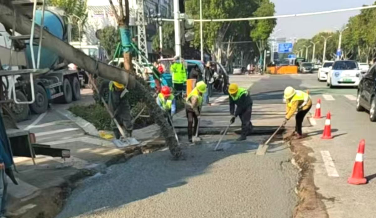 浇筑混凝土回填供热管道路基