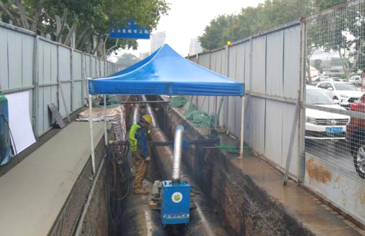 冒雨焊接供热管道赶工期
