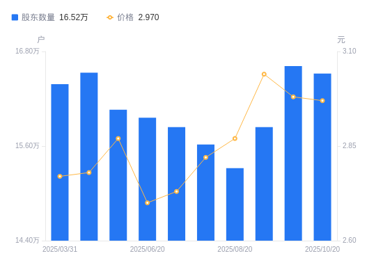 10月28日消息,数据显示,截至2025年9月30日,正邦科技A股股东总户数为16.61万户,较上期(2025年9月19日)增加7746户,增幅4.89%。公司最新A股总股本为92.5亿股,其中流通A股71.54亿股,户均持有流通A股数量为4.31万股,较上期减少2105.75股,降幅4.66%;户均持流通A股市值12.83万元,较上期减少8985.12元,降幅6.54%。