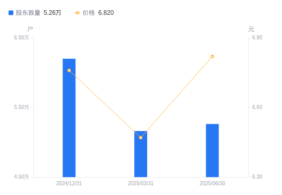 日期A股户数(户)流通A股户均持股数(股)户均持股市值(万元)2025-09-304711016939.3911.652025-06-305262515164.1810.342025-03-315160915462.7110.002024-12-316201012869.138.702024-09-305336514953.9010.002024-06-304336618401.857.842024-03-314551817531.858.842023-12-315046415813.559.492023-09-304760516763.269.242023-06-304629317238.359.84