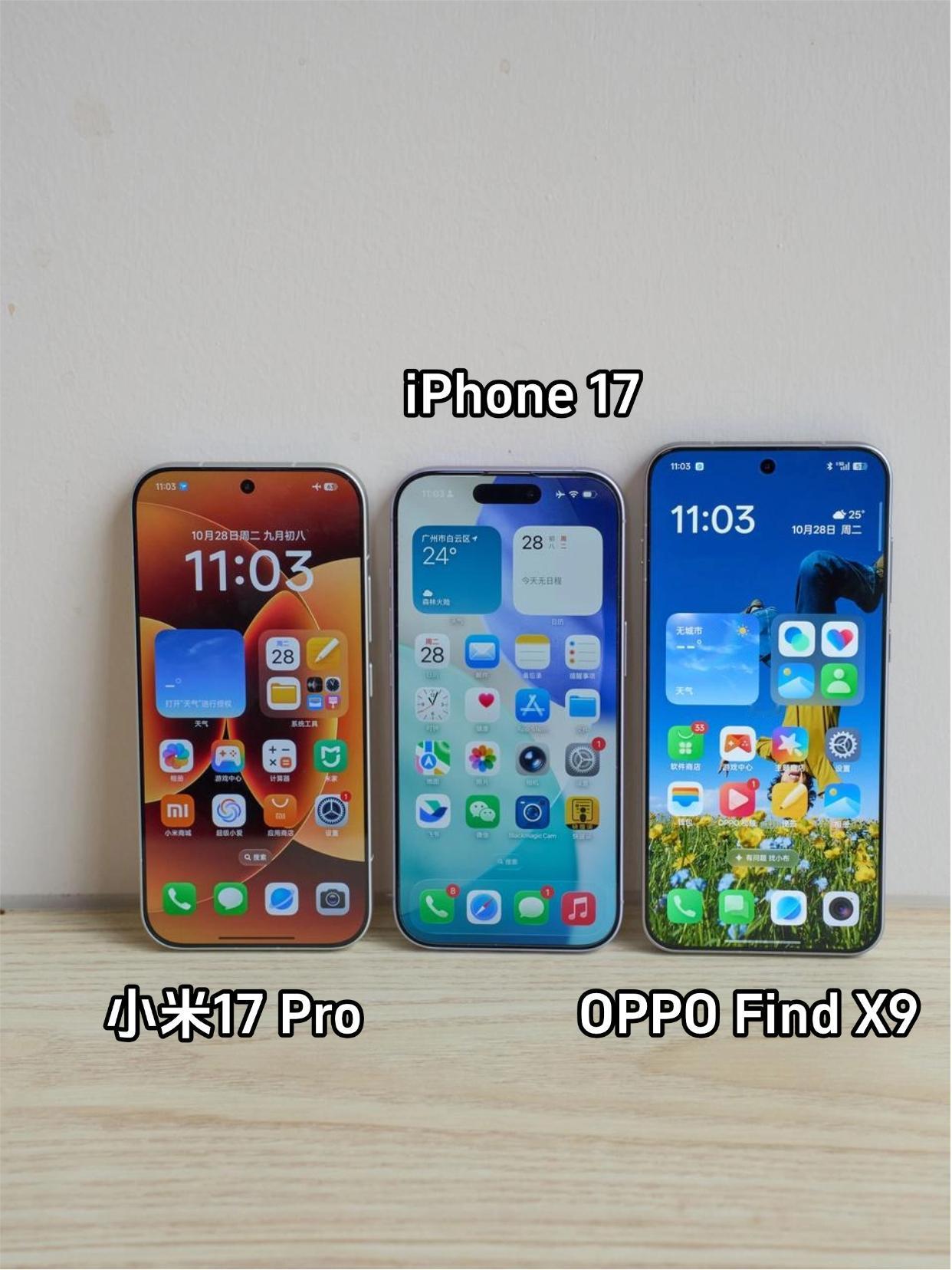 双十一卡颜局!O米果三大人气旗舰你选谁? 直接锐评吧,双十一打算换手机的话,10月三大热门旗舰iPhone 17、小米17 Pro以及OPPO Find X9,极限三选一你选谁? 这三款都是直屏、直角中框,iPhone 17经典的药丸Deco主打一手清新,小米17 Pro背屏个性化十足,OPPO Find X9的左上角矩阵简约优雅,质感十足,还有超人气的钛色,大家更喜欢谁的设计呢?