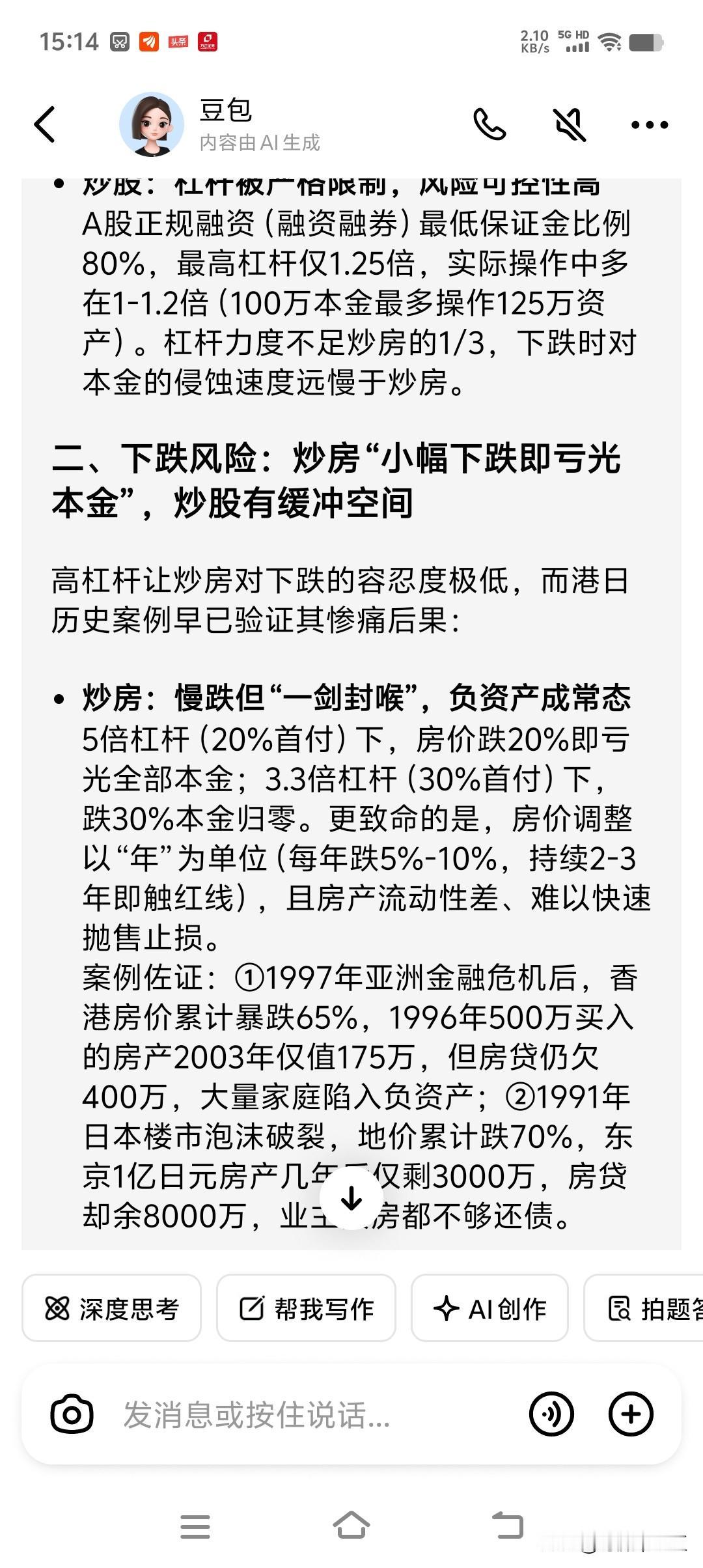 炒股VS炒房:高杠杆下的风险对决 我与Al对话,豆包生成 背景:房价持续调整