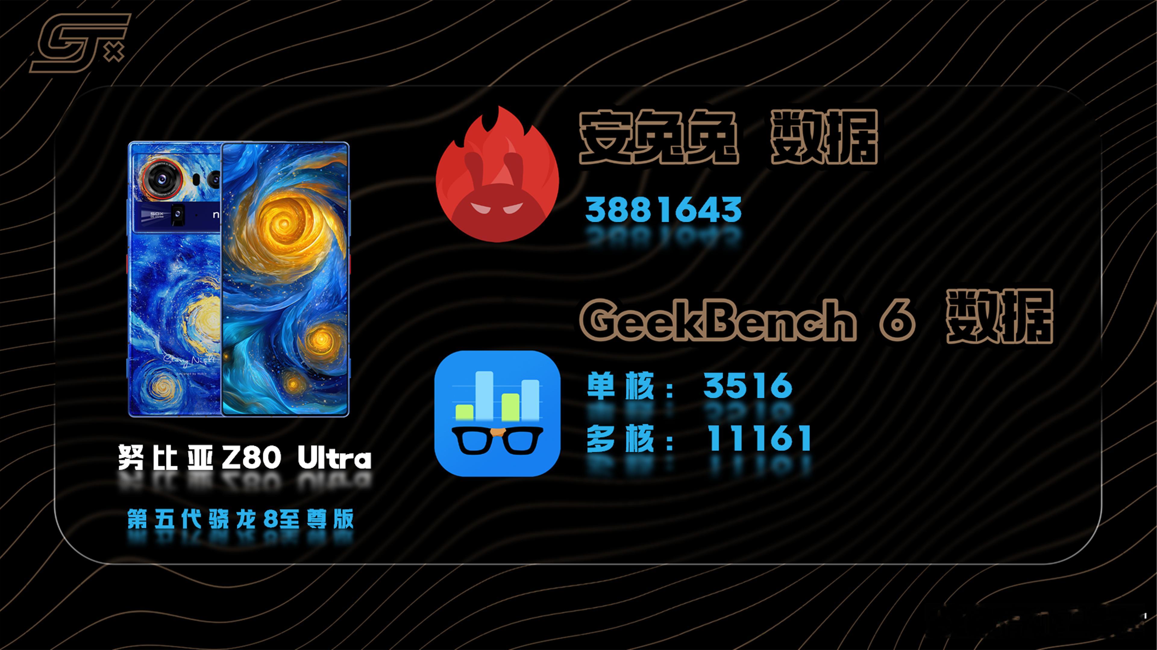 再聊聊努比亚Z80 Ultra我们实测下来的表现吧,说实话还挺不错。第五代骁龙8至尊版处理器,安兔兔跑分388万+,GeekBench 6单核3516分、多核11161分,多核也是轻松破万了。
