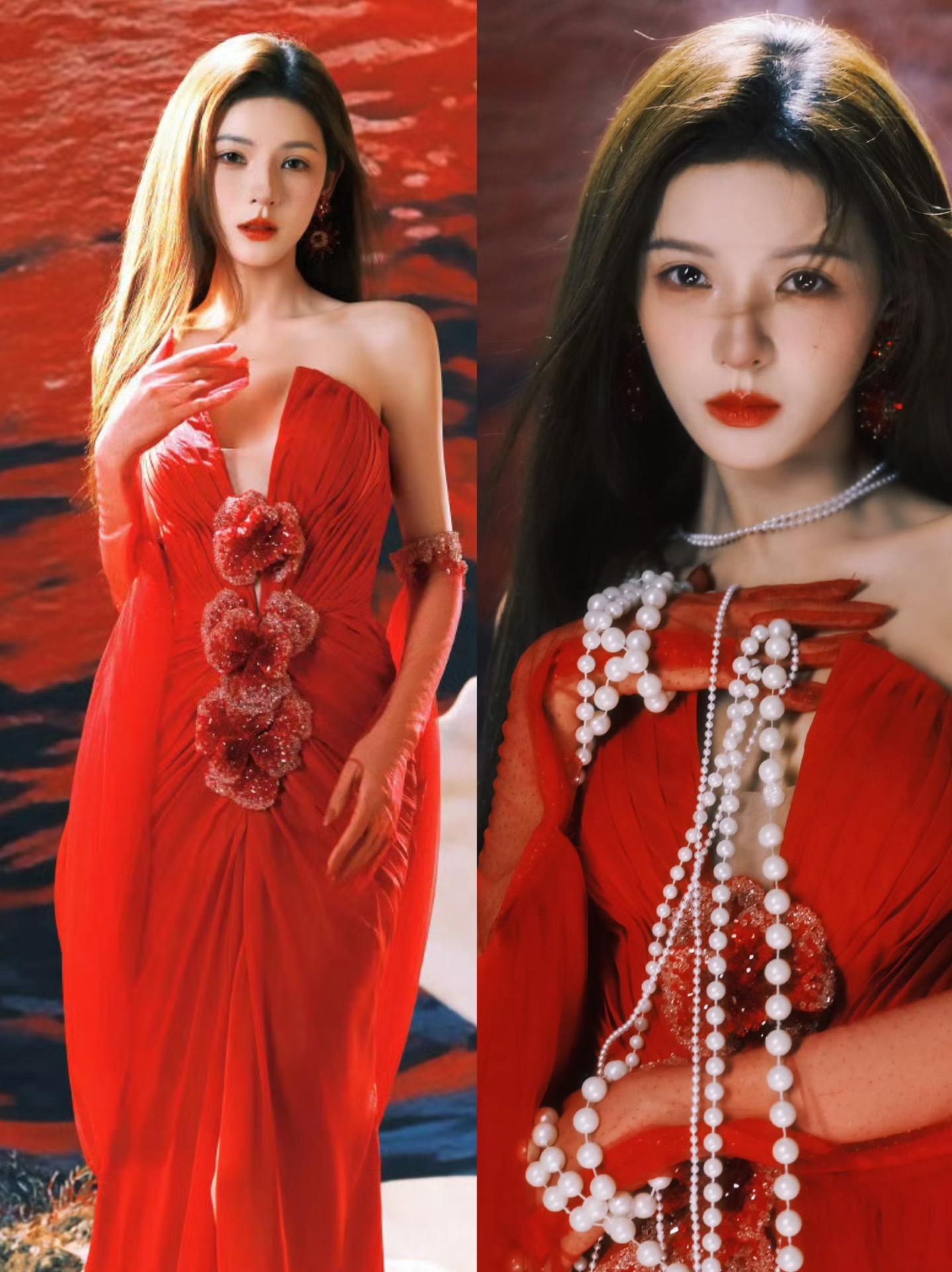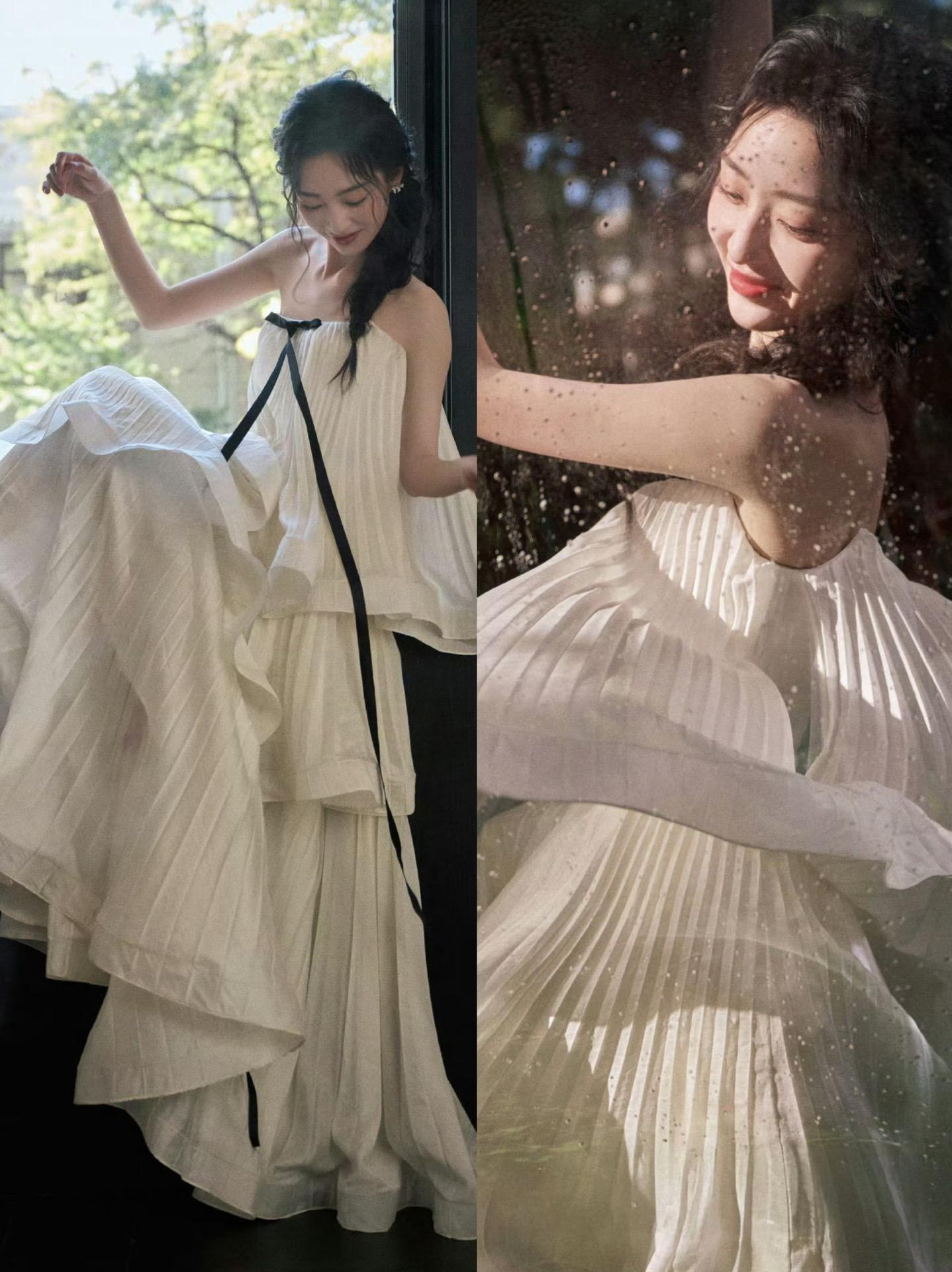 刘亦菲把死亡玫粉穿出了定制款的感觉,这种颜色普通人穿上分分钟黑三度,她居然能穿出