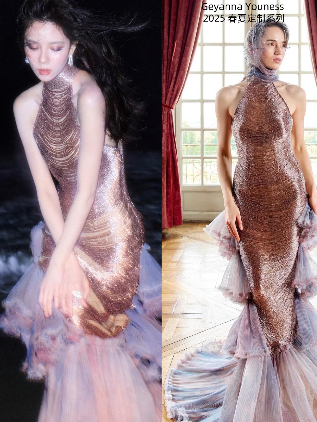 ELLE风尚大典明星造型。杨幂的银纱鱼尾礼服被形容为“揉碎星光的海浪诗行”。 关晓彤的Elie Saab高定礼服搭配海浪背景,被赞“浪漫闪耀”。 刘宇身穿 Germanier 2025 秋冬高级定制新装即将亮相今日 ELLE 盛典。
