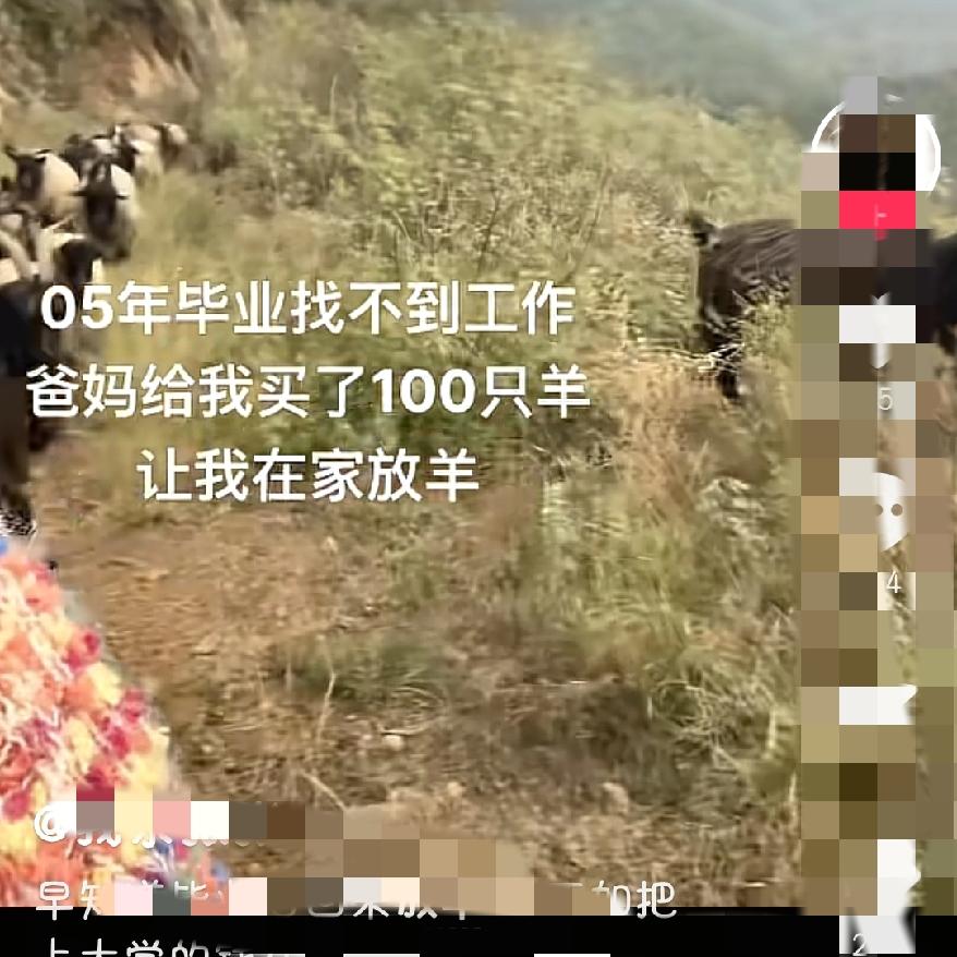 女生毕业找不到工作, 父母掏五年积蓄 买100只羊让她放,这事儿一点儿也不夸张,而是父母给予的托举。 有网友说“读十几年书去放羊,白费教育资源”,这话真狭隘,分明是酸吧。 人家哪是瞎忙活?拍短视频记录赶羊喂草,没滤镜没套路,反倒攒了三万粉,羊肉都被直接找上门的网友订走了。这其实是用新法子干老行当,比在城里死磕简历强太多了吧。 而且现在早不是老观念里的“回村没出息”了,2025年一号文件都在支持大学生返乡创业,养羊能拿补贴,还能跟合作社合作。抖音上乡村创业视频播放量涨两倍多,带货成交额超五百八十亿,这趋势摆着呢。 她没当网红,每天照样早起干活,不用打卡看脸色,又能陪伴父母,一举两得。这哪是失败?是把人生主动权攥回自己手里。 你觉得这种“换赛道”的选择,比硬卷职场更清醒吗?大学生创业 回家种田 农村