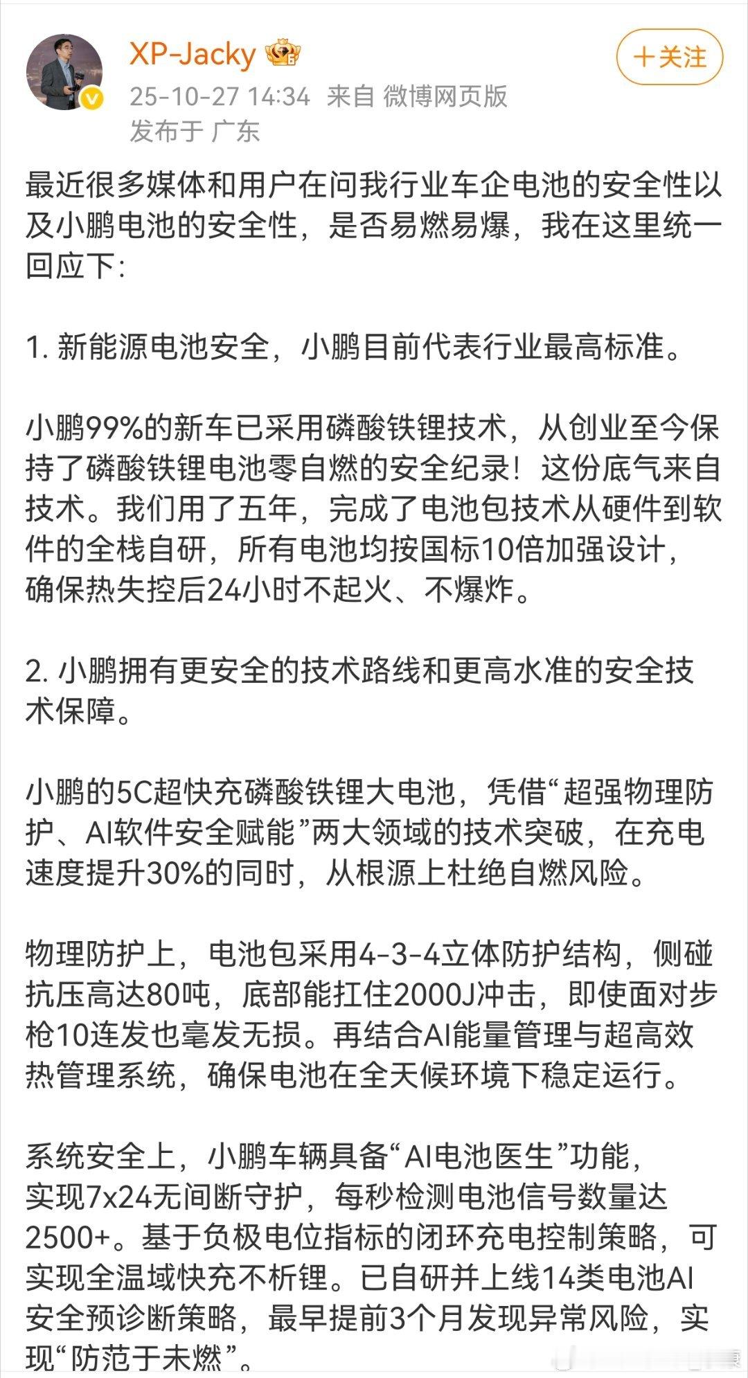 划重点,小鹏确保热失控后24小时不起火、不爆炸,从根源上杜绝自燃风险。