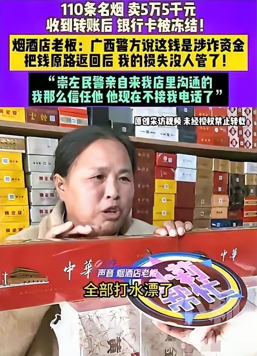 河南,3名男子去买烟,张口就要110条烟,总计5.5万元!店主以为来了大客户,热情接待对方,结果,没过多久,店主的银行卡就被冻结了!原来,他们收到的烟钱,居然是涉诈资金! 后来广西民警来了,说让把4.5万转回去还给受害人,还承诺帮追烟,老板想着配合办案是本分,就转了,可之后民警电话不接微信不回,烟和钱全没了。 这事儿真让人窝火!小本生意5万5是几个月流动资金,老板哪能分辨钱是不是干净的?总不能卖东西前先查人资金来源吧?警方追赃没错,但不能让老实人买单,至少得有个靠谱的承诺和返还机制。 你们说,要是银行能给大额陌生转账弹个风险提示,会不会少点这样的糟心事儿?评论区聊聊你的想法!