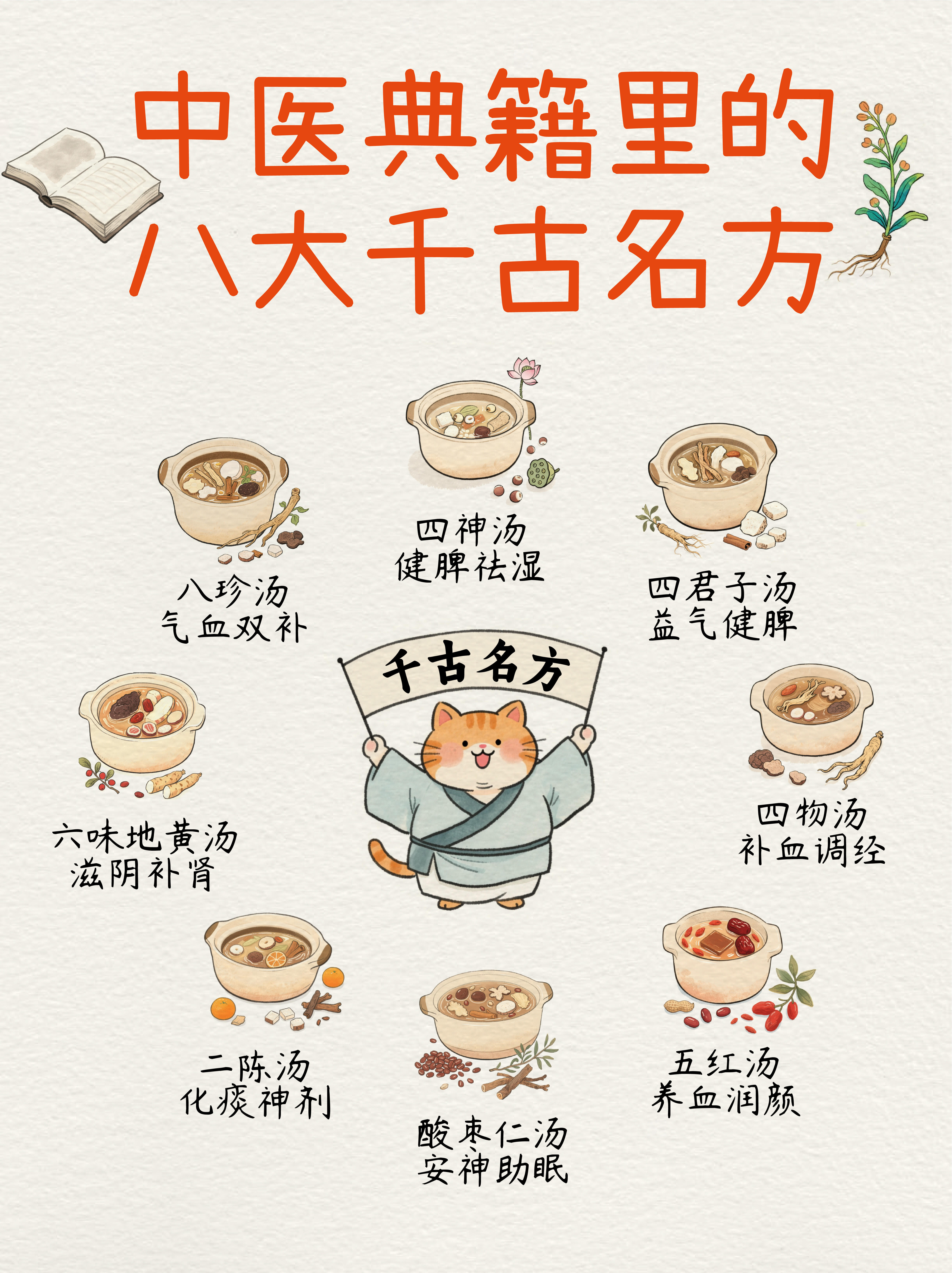 中医药食同源经典:老祖宗留下的八大古方藏在典籍里的养生智慧:这八大千古名方,是中医界公认的“天团”,每一方都是经过千年验证的传奇: