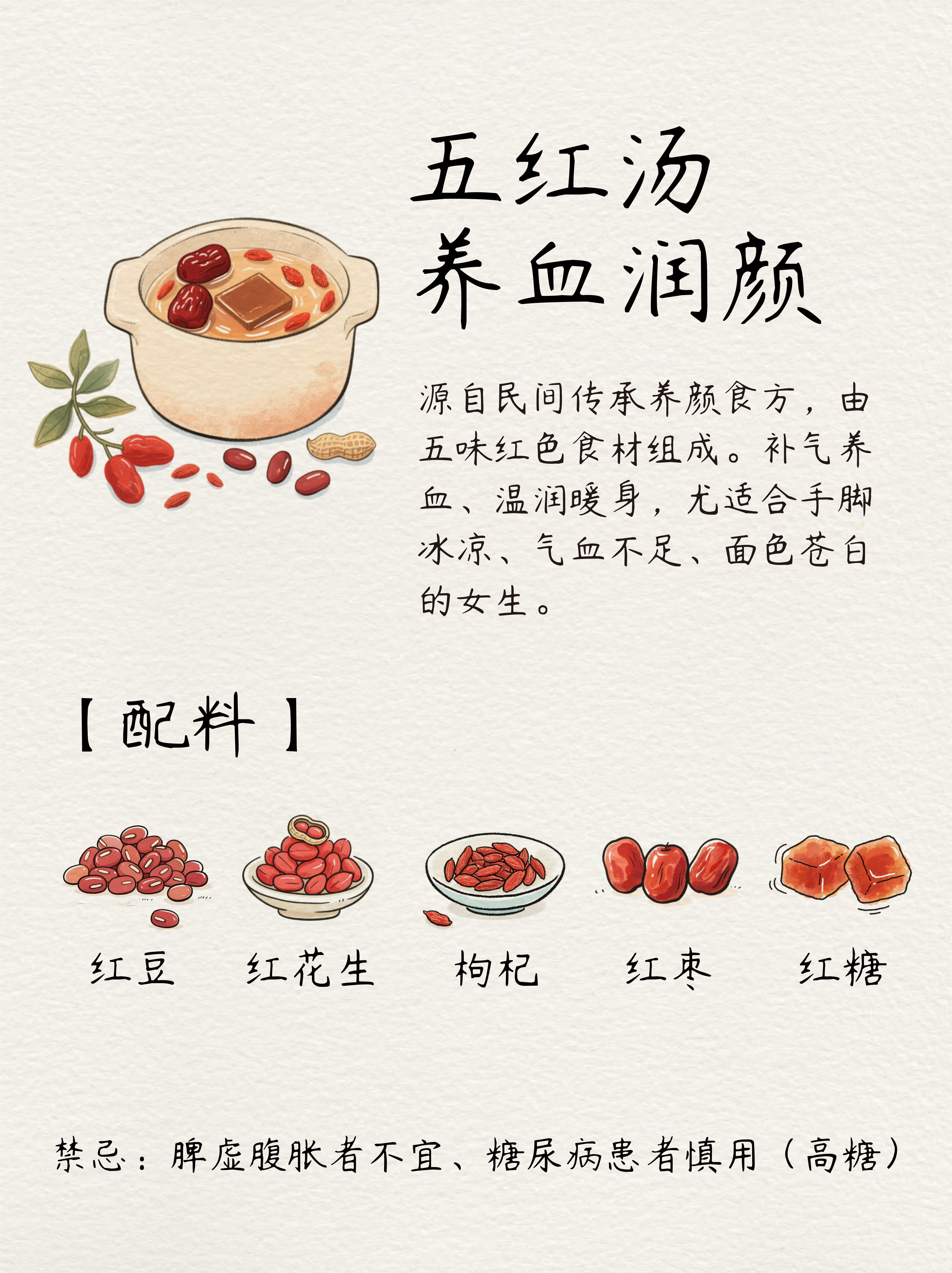 ❹养血润颜:五红汤