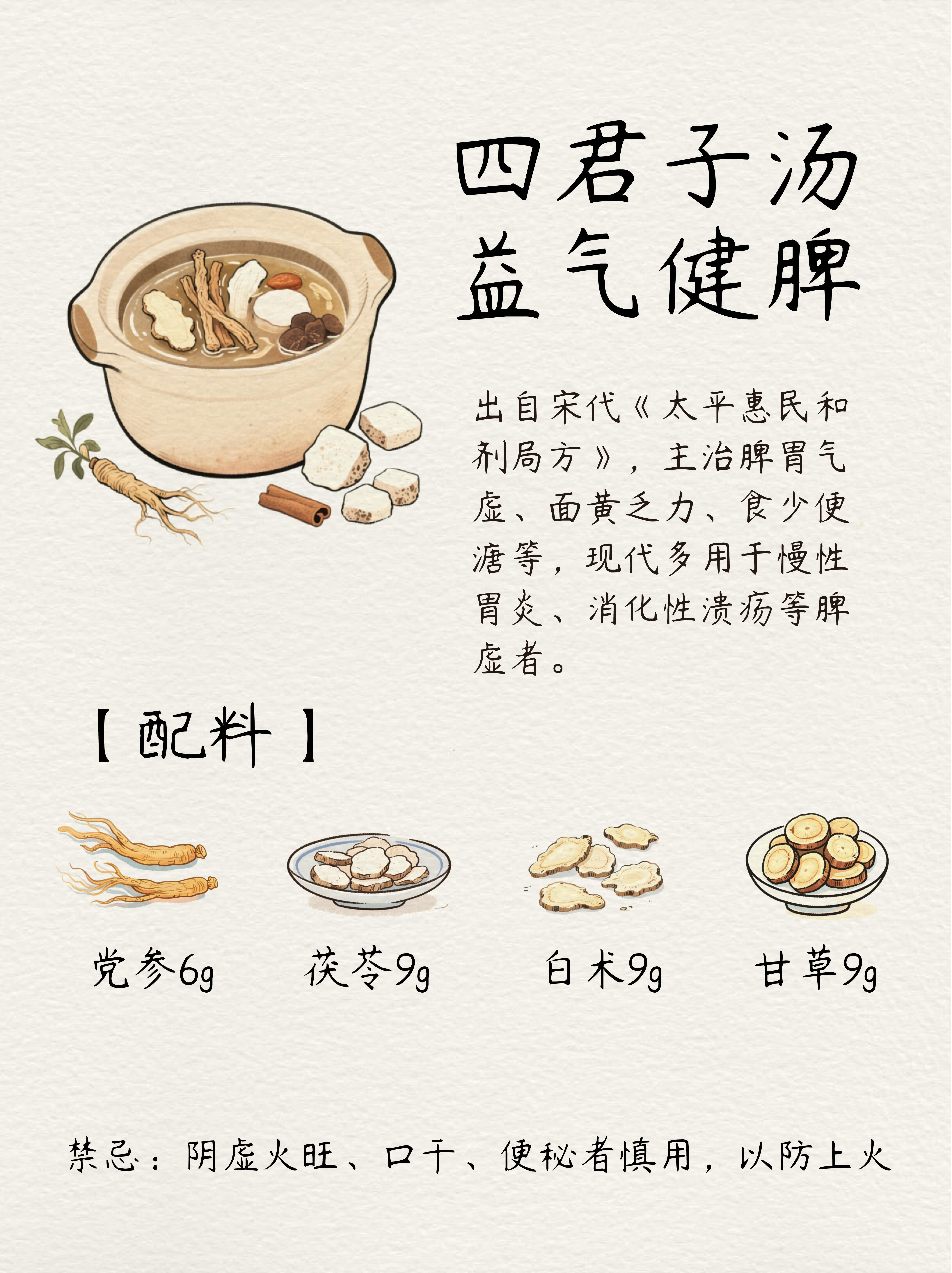 ❷益气健脾:四君子汤