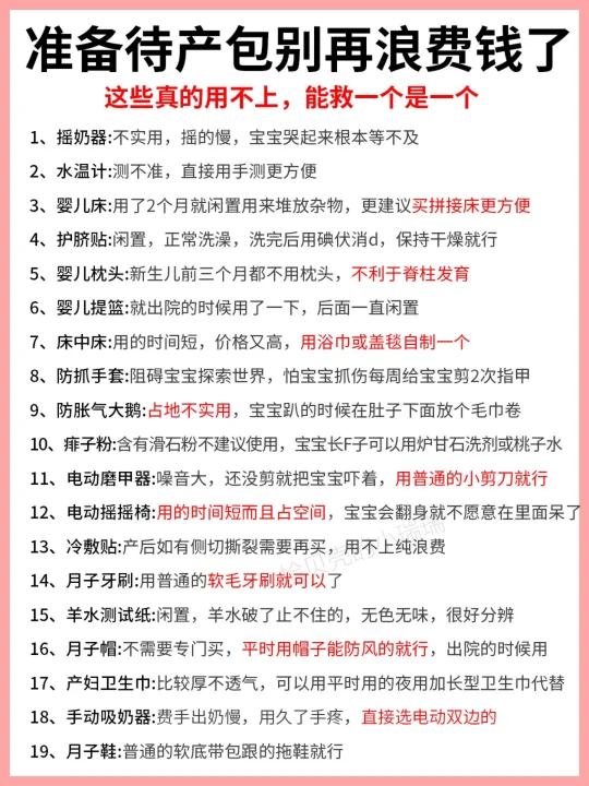 2. 医院确认:部分医院提供待产包,避免重复购买!