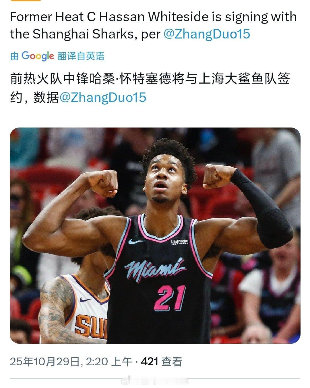 消息源:据我向上海男篮制服组相关渠道了解,上海大鲨鱼方面大概率将向怀特塞德提供一