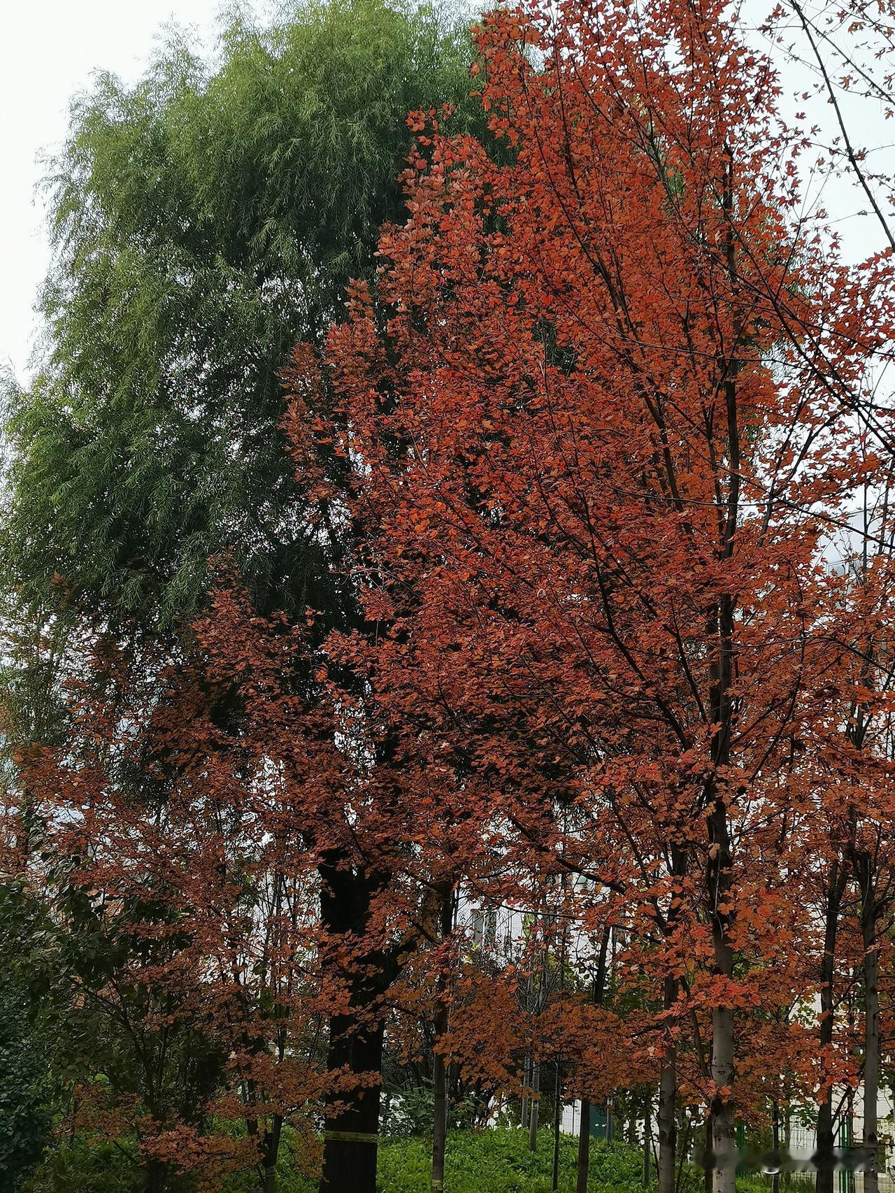秋天到了, 树叶黄了…… 这此时此景, 说不得有多萧索, 但树间红黄绿相映, 别有一番美!