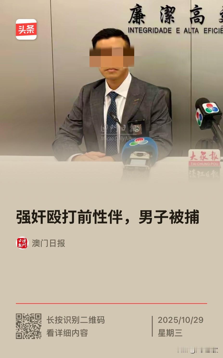 一女子到澳门旅游,结果却遇到了前炮 友,随即男子将女子强行带去了酒店开了房,对其实施性侵后又对其实施了殴打,事发后,女子求助了亲姐让其报了警,男子随即被警方拘捕。网友表示,这真的是太有缘分了,这都能碰到。 刘女士虽然已经结了婚,但还是喜欢去夜场游玩,一次偶然的机会,刘女士认识了男子吴某,两人随即发展成了性伴侣关系,随后,刘女士发现对方的控制欲非常强烈,于是便提出了分手。 即便刘女士提出了分手,可是吴某还是一直纠缠不休。事发当天,刘女士和姐姐到澳门旅游,结果却在酒店餐厅遇到了吴某,吴某要求刘女士到酒店房间,不然就把两人关系公开。 无奈,刘女士只好和对方一起进入了房间,结果却被吴某侵犯,不仅如此,在吴某发现刘女士向姐姐求助后,还将刘女士给打了一顿,最终,在姐姐的帮助下,警方破门而入将吴某抓获。 事发后,有网友调侃,现在不止是你家人知道了,现在全网都知道了,这下丢人丢大了。 还有网友表示,两人都是性伴侣了,还谈什么性侵? 其实,虽然吴某是内地人,侵害的也是内地人,但是事发地是在澳门,所以,澳门对此依然是可以管辖的。 一般而言,按照当地的法律,吴某面临的是‌3-12年刑期的‌。若存在加重情节(如利用被害人经济依赖、导致重伤/死亡等),刑期可延长至‌4-16年‌。 ‌‌ 当然,这与内地是有一定差异的,虽然两地刑期起点为‌3年‌,但是内地加重情节最高可判‌死刑,而澳门未设置死刑。 但就本案来说,吴某因为只是侵犯没有导致对方重伤死亡的,面临的刑期是3-12年。 如果吴某被判处有期徒刑3年,那么等吴某刑满释放后,回内地是否还要继续坐牢? 吴某具有中国国籍的公民,在澳门犯《刑法》规定之罪的,应当追究刑事责任;澳门属于特别行政区,按照澳门特别行政区法律规定为有罪的,就是回到大陆,也按照《刑法》规定追究刑事责任。 所以,即便吴某在澳门服刑结束之后,回国内的话,也有可能要被追究责任。 对此,你对本案有什么看法? —————————— 关注我,带你评析法律热点,关注冷暖人生。 文章原创,抄袭必究