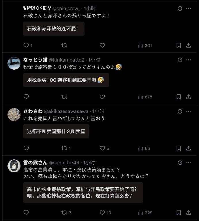 高市早苗刚上任就“卖国”?奴颜卑膝摇尾乞怜后,疯狂向美撒币 据彭博社报道,在特朗普与日本首相高市早苗会晤当天(28日),日本有关部门公布了一份情况说明书,内容为日本此前宣布的对美5500亿美元投资计划以及潜在项目清单。 这份文件显示,日本目前已经规划了核电、小型模块化反应堆建设、AI等在内的21个对美投资项目。而这些已公布的项目价值就超过了4000亿美元,那在加上未公布的和后续追加的,5500亿美元的原定数额恐怕打不住。 5500亿美元,这已经比日本GDP的10%还要多了,可笑的是,在投资回收后,美国还将独享90%的项目利润,日本人只能拿10%的辛苦费(9月日美签订备忘录规定此分成方式,改变的可能性不大)。更可笑的是,日本人现在还拿不出这么多钱来直接投资,所以得通过贷款和担保等方式来给美国“上贡”,“亚洲提款机”果真名不虚传。 不仅如此,除了这5500亿美元的天价投资,日本还计划多从美国采购30亿美元左右的国防装备、多买75%的美国大米、采购100架波音飞机、采购价值80亿美元以上的美国农产品(玉米、大豆等)。 这一套操作下来,特朗普是乐了,但不少日本人可是气的喷火,在网络上大骂高市。 原本,日本是要从美国买130亿美元的武器装备,这已经不是个小数目了,但新上任的高市为了拱卫“日美同盟”关系、讨好特朗普,把采购额定到了160亿美元,对此日本网民只能苦笑:“平白无故多掏30亿,这是把我们当成任由开采的VIP客户了?”。 大米方面,日本人一听要增购美国大米,再结合高市此前提出的“水稻减产”,一拍脑袋就悟了:原来一切都有迹可循,什么防止大米价格上涨,完全就是在为进口美国米做准备吧。现在,高市早苗已经“被开除”日本国籍:日本网民纷纷骂她不是“自己人”,是在卖国。 对于高市早苗奴颜卑膝的“摇尾式”外交,有的日本人已经骂不动了,直呼:还不如做美国的第51州来得痛快...