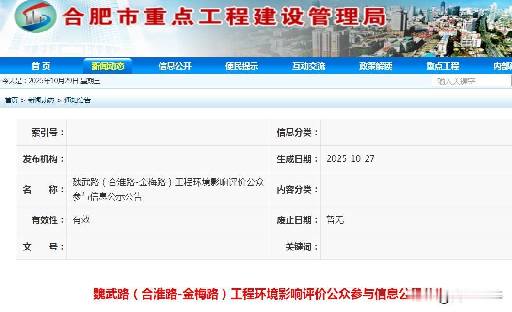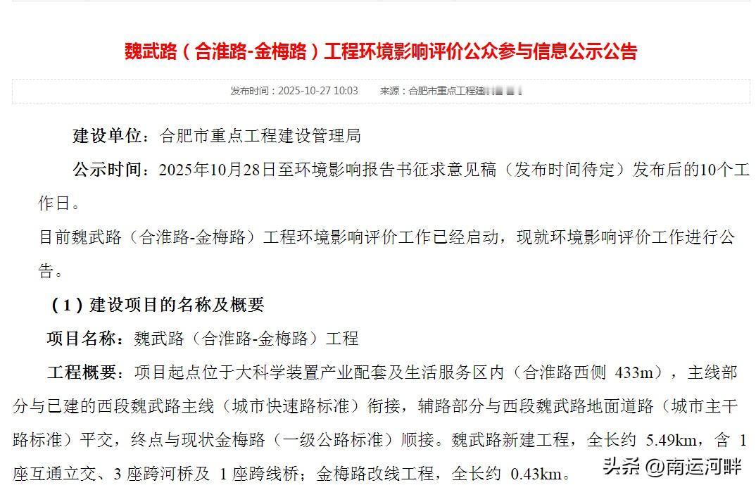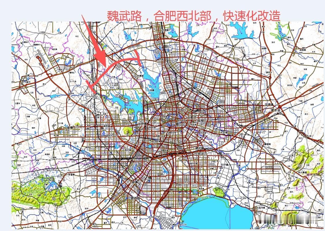 合肥西北部快速路,魏武路环评! 西北部交通不便,快速路急需,未魏武路将来承担三环的作用,连接合肥东西中三个方向片区。 此次环评,申请是长丰岗集段,庐阳区段。 以后北城从蒙城北路一路到绕城高速西环,到达新G206国道。以后进一步连接方兴大道通往高新区方向。