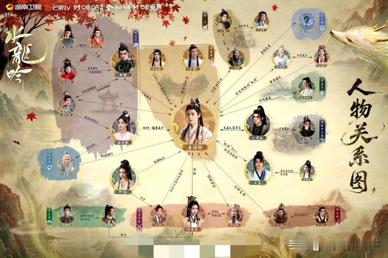 《水龙吟》这人物关系图直接把群像魅力焊死了! 唐俪辞+小分队的日常也太戳玄侠魂了——没有重复的关系线,每个角色的设定都带着新意,这才是神州江湖该有的鲜活感! 罗云熙的唐俪辞造型贵气又带感,群像的拉扯、羁绊直接把故事张力拉满,已经开始蹲开播了! 水龙吟 唐俪辞 罗云熙