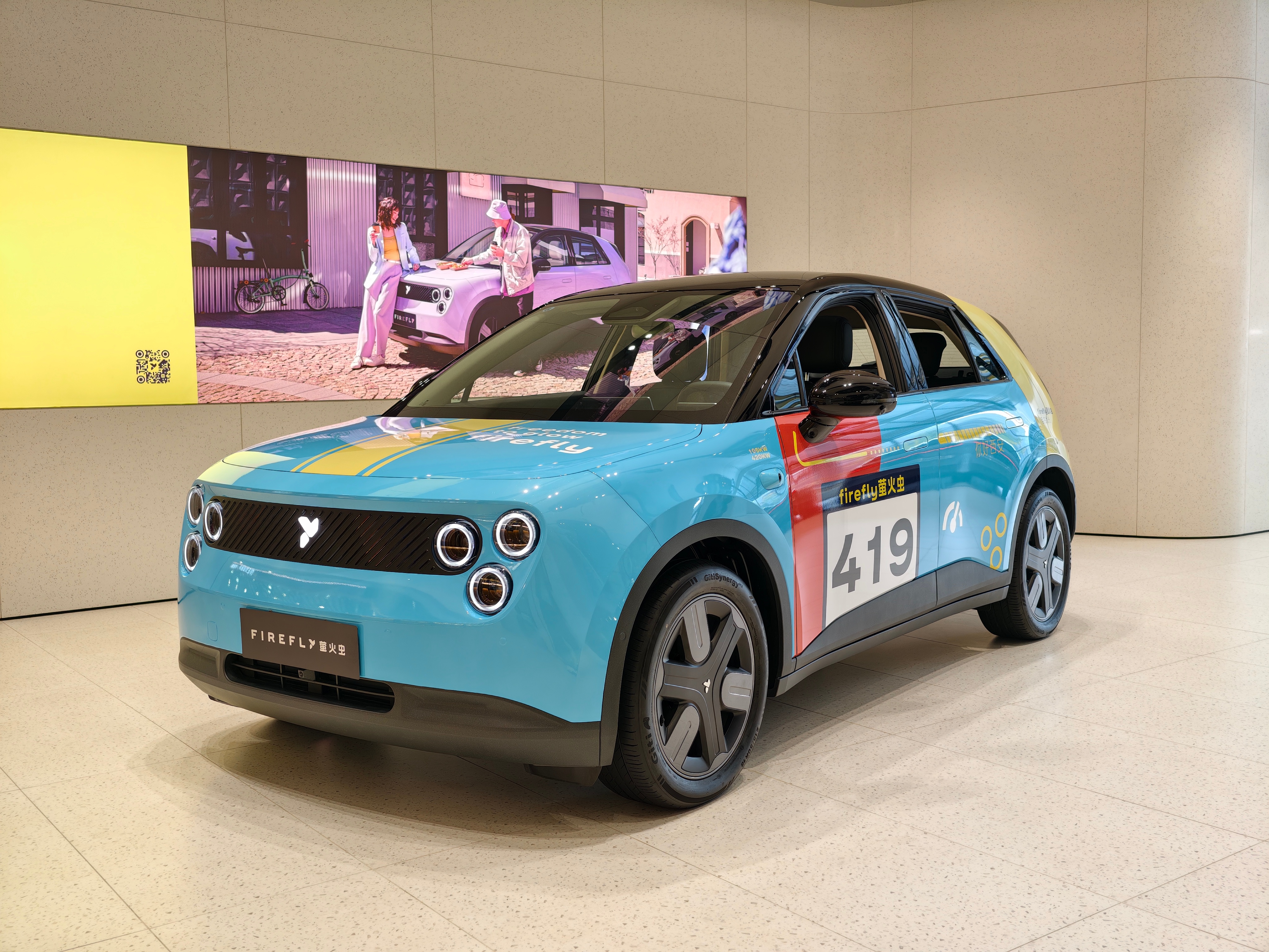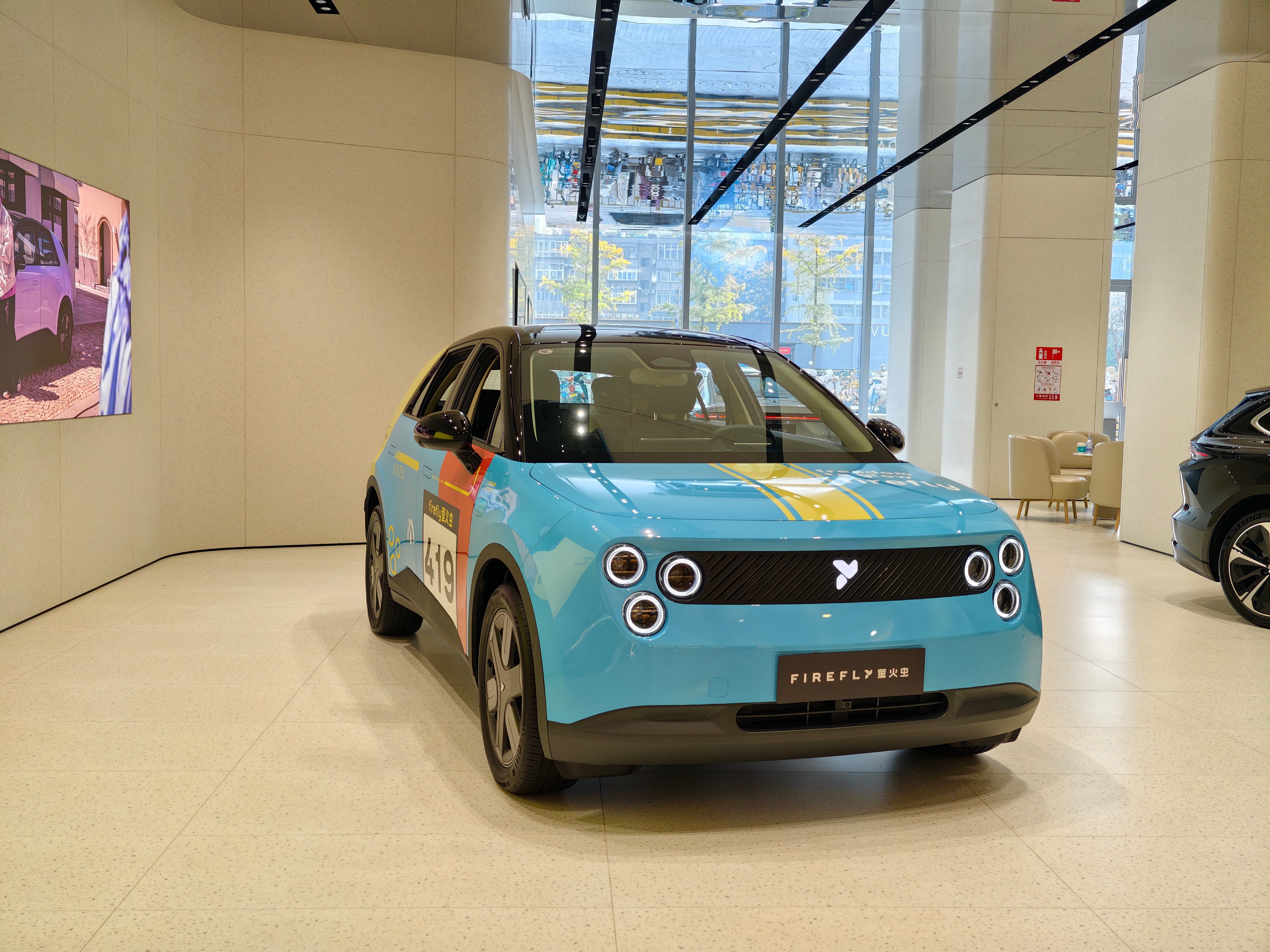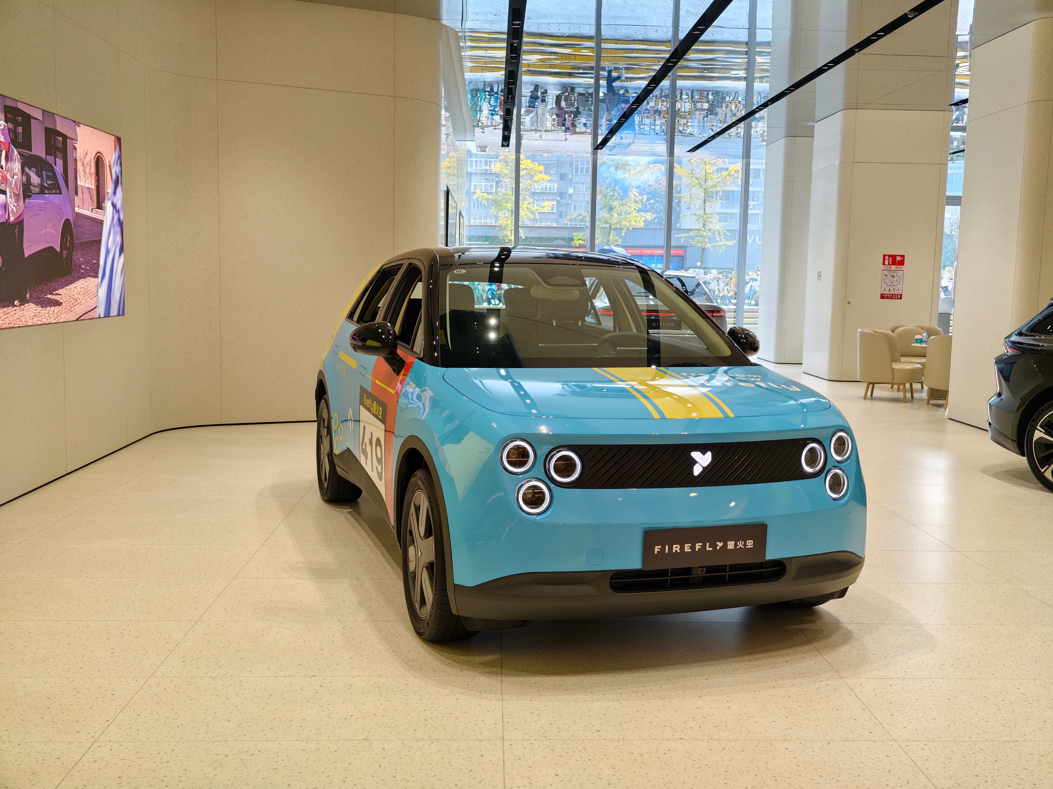 蔚来萤火虫的这个车衣还挺好看,进门就能看到,蔚来把它放到比较显眼的地方,很多人过来都会瞅一眼[喵喵]