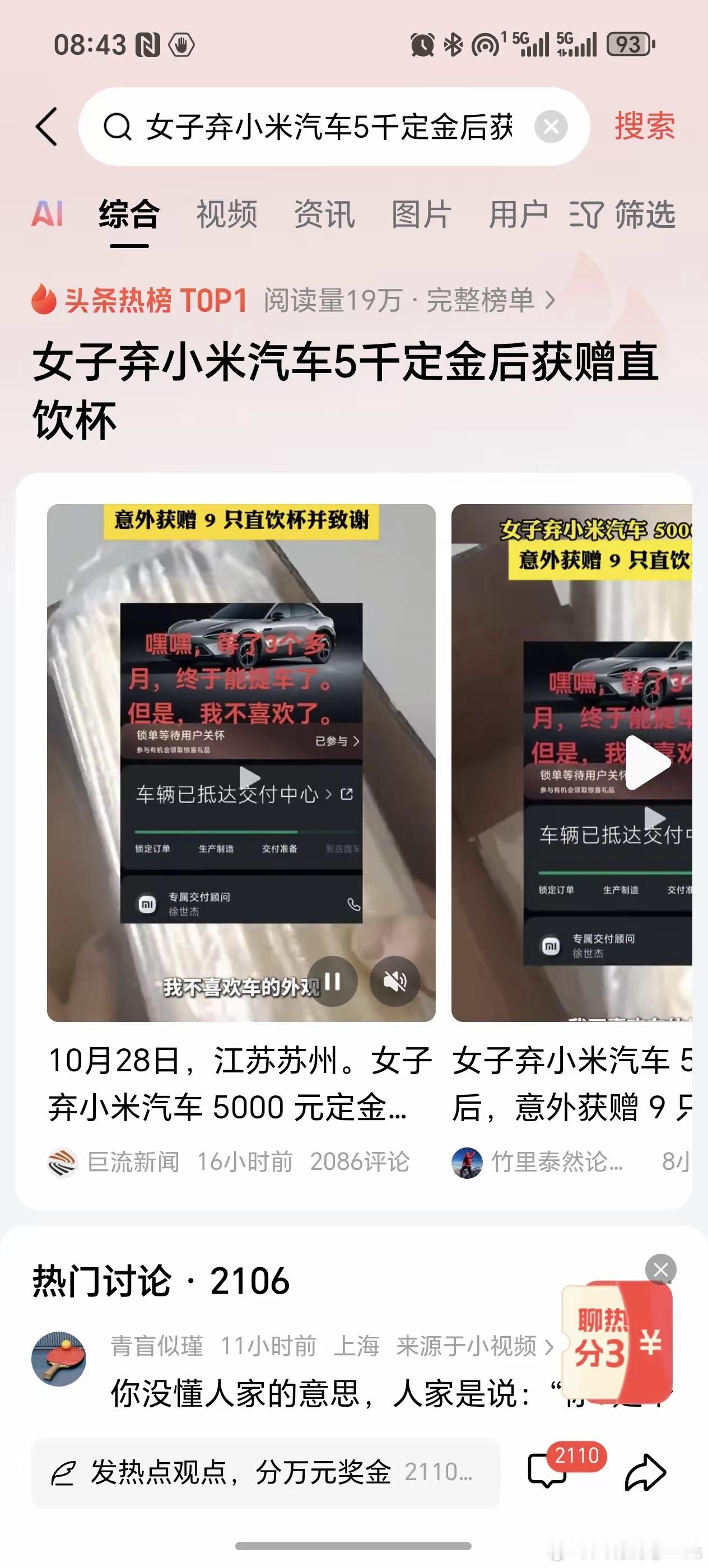 相当于5000块钱买了9个不锈钢水杯?这波也不亏,毕竟原本定金就是不退的……