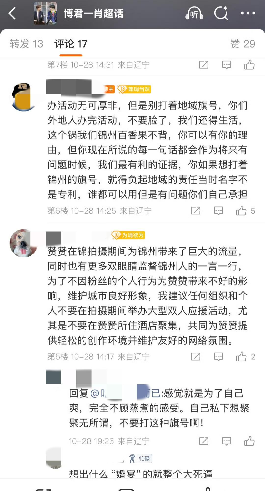 所有人其实都知道现在这个无可辩驳的事实:博君一肖这个群体的所有行为逻辑都基于维护肖战的利益。 无数次的事实无比肯定和清晰,博君一肖这个群体每一次就是故意去王一博线下闹事,而对于肖战的活动,这个群体会“突然就清醒了理智了”,开始呼吁全体不准做线下双人应援,因为会带来不好的影响!!! 她们说,喜欢就别把他架在火上烤,喜欢是尊重,那么她们有一丝一毫尊重过王一博吗? 博君一肖cpf=王一博黑=肖战粉丝,请记住。