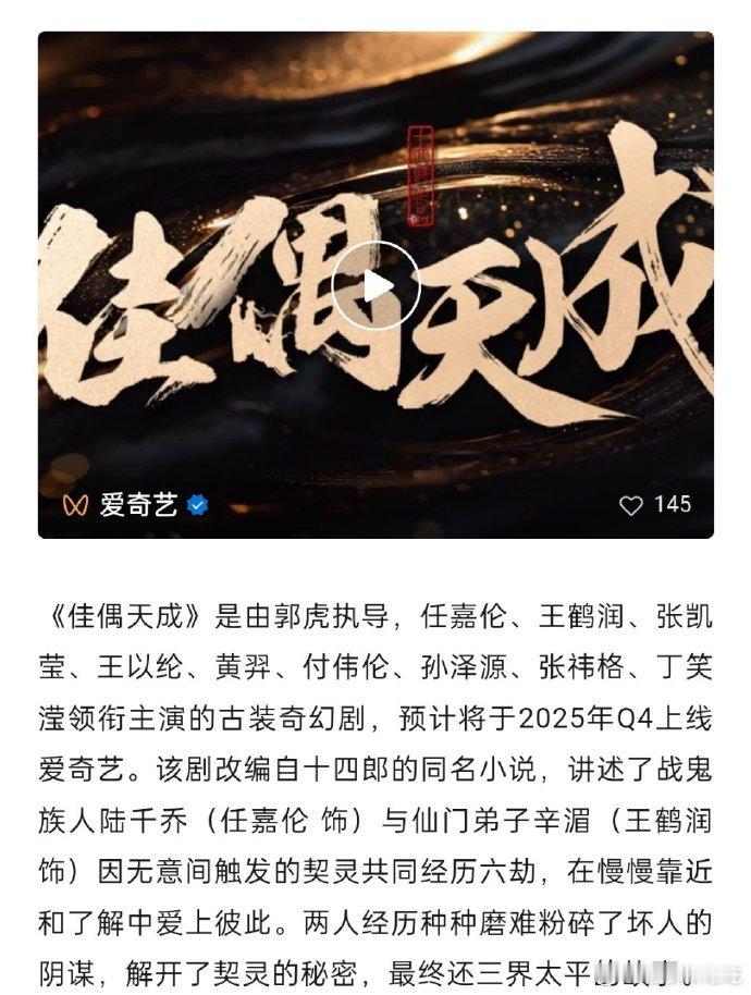 任嘉伦佳偶天成播前招商来了,预计Q4播出!!