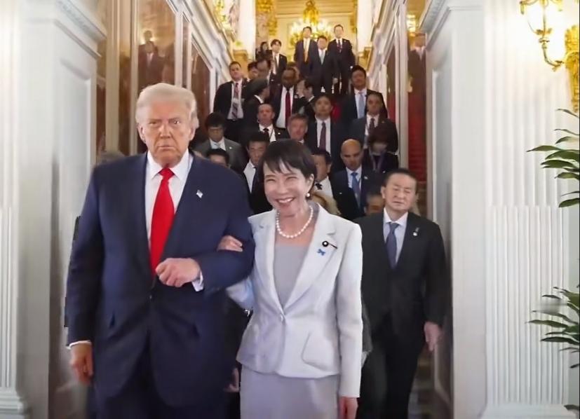 太辣眼睛了! 高市早苗挎着特朗普的胳膊,笑得眼睛都快眯成一条线了,活脱脱一个“眯眯眼”表情包。老特更绝,不仅配合走两步,还贴心拍拍对方的手,这待遇怕是连自家老婆都没享受过。两人这互动,不知道的还以为是哪部偶像剧现场,连“有事就找我”这种虎狼之词都蹦出来了,谁听了不懵?网友直呼:这糖分超标了吧! 你们觉得他俩这波操作是单纯作秀,还是另有深层考量?来评论区聊聊你的看法~