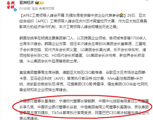 章泽天刘强东罕见合体!APEC峰会素颜亮相,东哥眉头紧锁引猜测