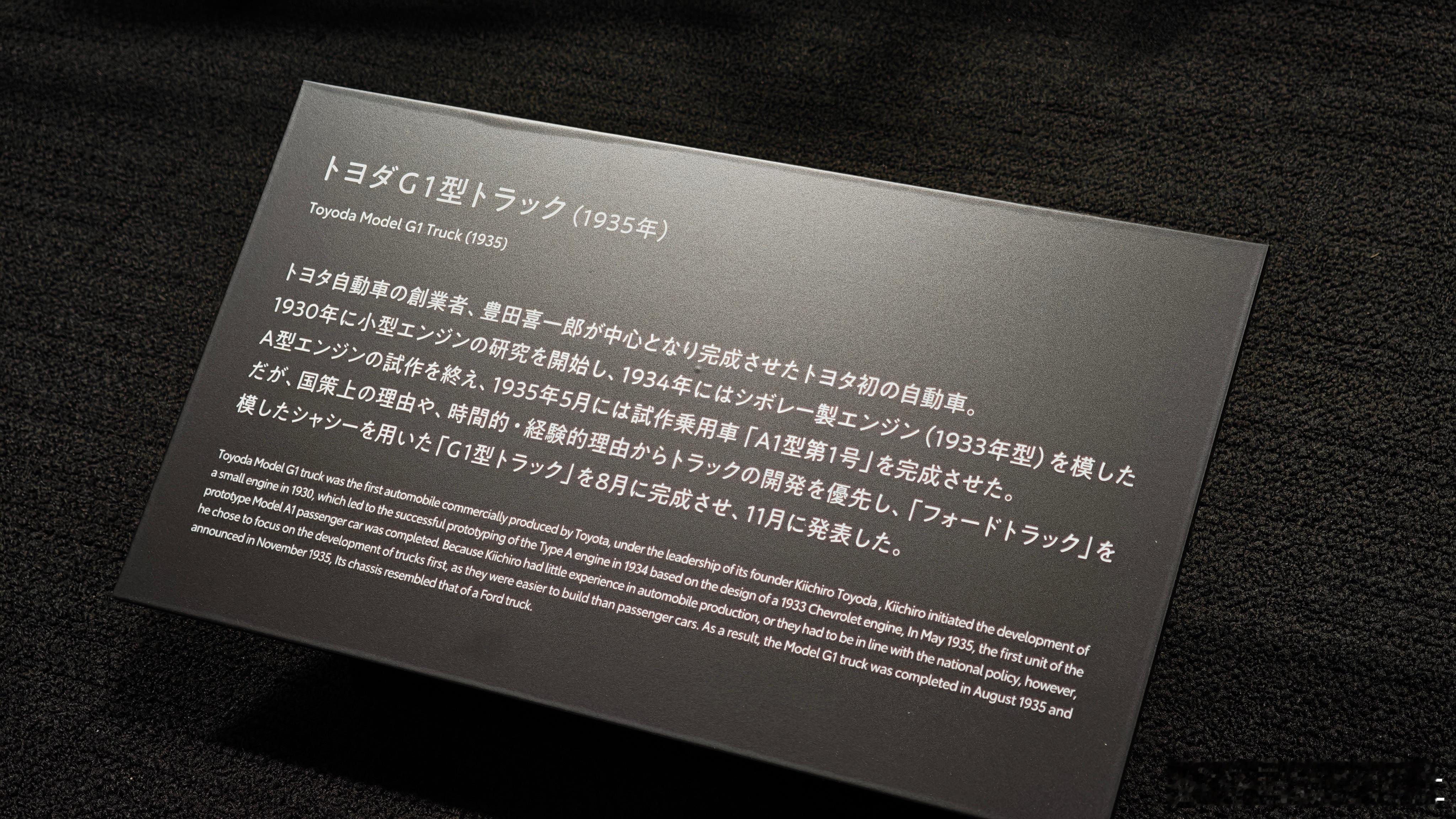 给丰田立下汗马功劳的运输卡车G1,这在当年是妥妥的高效率运输工具啊,在1935年丰田就已经把它投放当时的市场,大家找找这台车上,竟然有汉字出现,关于这台车还有很多故事可讲,评论区点赞过100,我单独开一期讲这台卡车的内容2025日本移动出行展丰田
