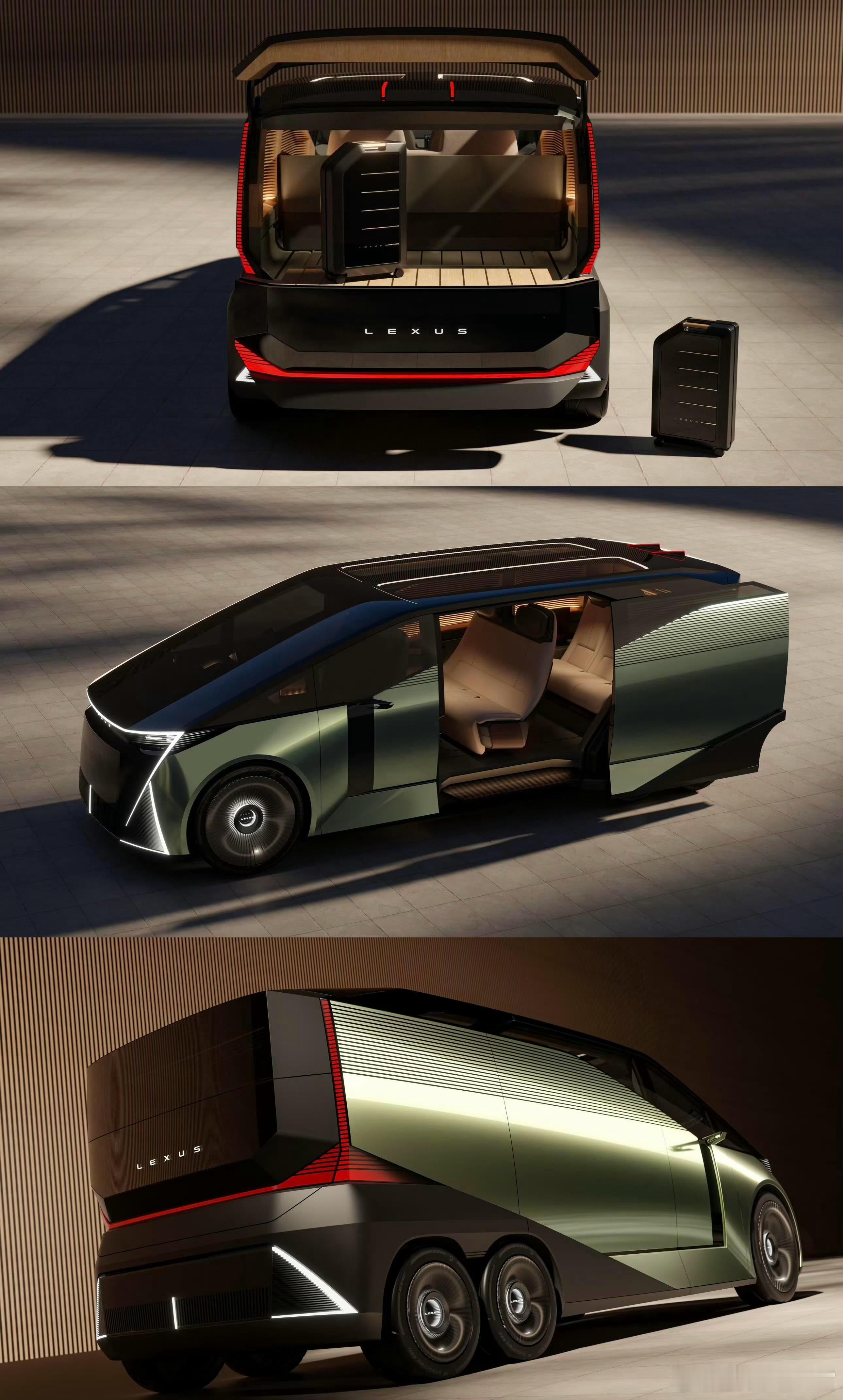 好家伙,雷克萨斯推出了款LS概念车,LS不再是轿车,反倒变成了MPV,据说未来可能会量产,总的六轮驱动,这造型属实是相当概念 + 夸张了,无论车头还是车尾的灯组都可以说是棱角分明,侧滑门,不过没想到车内用的是半幅方向盘,2 + 2 + 2六座布局,三排似乎挺有意思。讲真,这外观你们觉得咋样?[doge]