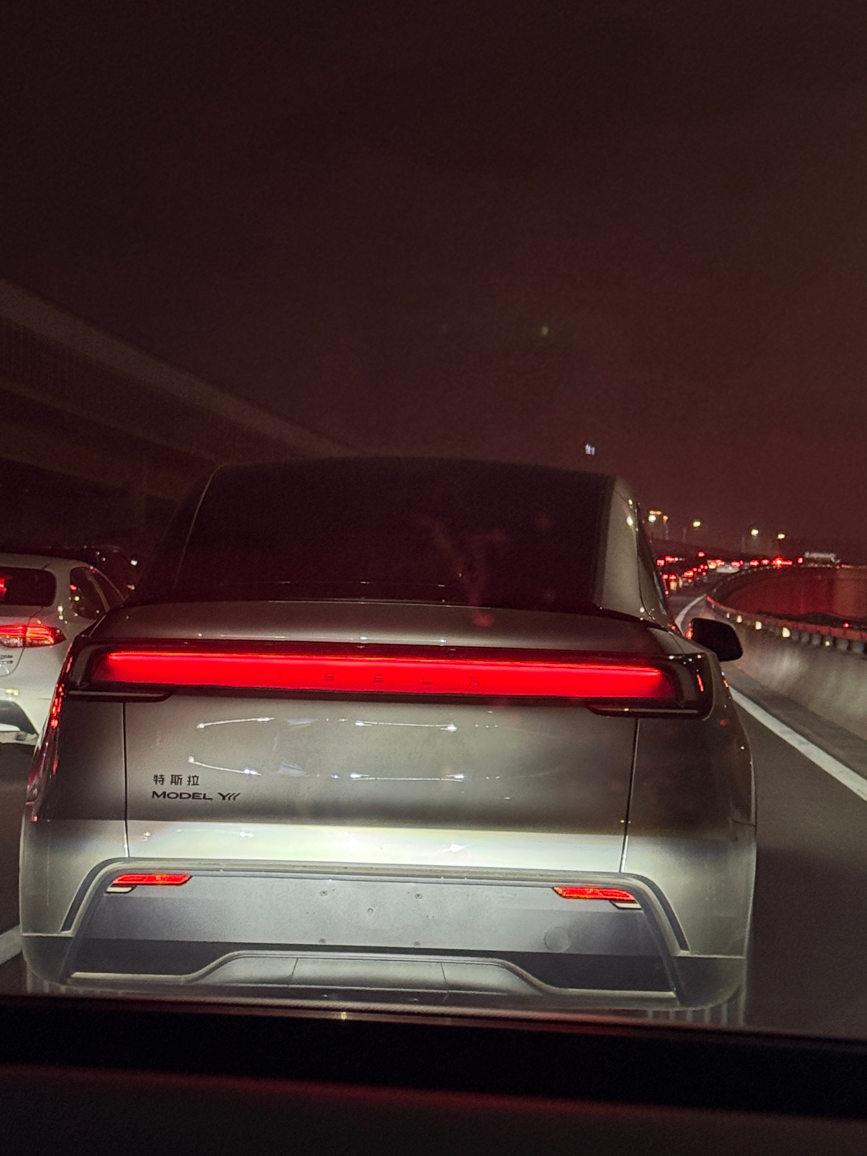 今天北京大雾,回家路上遇到了一辆加长版特斯拉Model Y。整体外观延续了Model Y的设计并作加长处理,所以辨识度还是挺高的,变道来到了车的身后拍个车尾[笑而不语]
