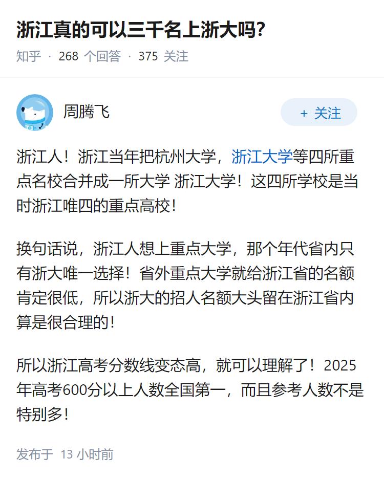 浙江真的可以三千名上浙大吗?