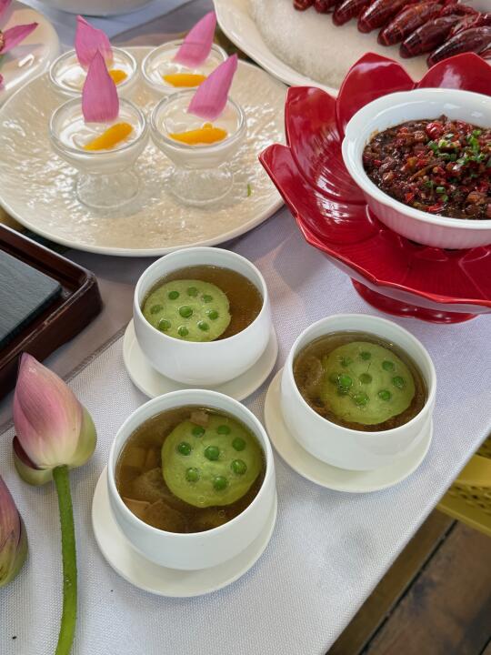 美得我眼前一亮又一亮!这个季节的荷花🪷尊嘟太美了!!!不用去杭州也可以看到这么美的荷花🥹 好爱他家!不仅可以宴请!生日宴!还有荷塘午宴赏荷花!私密性巨好!环境也好…服务也赞…菜品的口味也不错🥲 冰镇龙虾🦞莲花奶冻!莲蓬肉饼汤!莲花糕…莲花血鸭🦆云瑶里酸汤驴肉🫏翅汤多宝鱼🐟都特别有特色!今日要办宴席的尊嘟可以看看他家!!! - 📍 观宴(高新店)