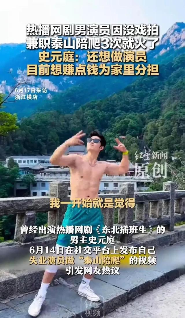曾主演热播剧《东北插班生》,周星驰横屏短剧《金猪玉叶》的演员史元庭,因无戏可拍选择做泰山陪爬,一时间登上热搜,引发广泛关注与热议。